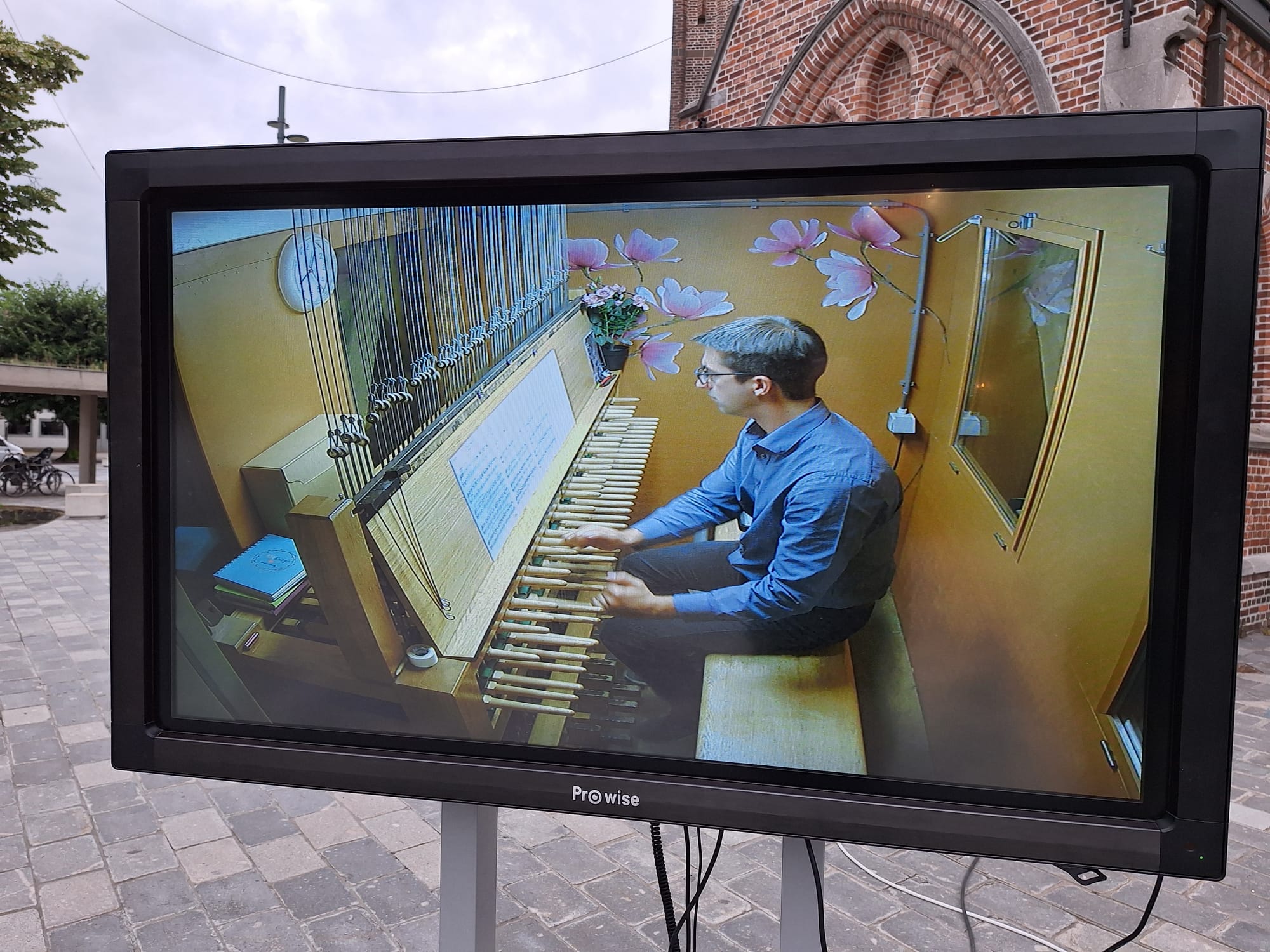 Het was zeker weer de moeite om eens te beluisteren, en je kon beneden op het Kerkplein dankzij een groot scherm erg makkelijk de man zijn spel volgen. Maar je kon ook 'live' de beiaard bovenaan gaan bekijken, en dat... dat was wel een kuitenbijter, maar de moeite om eens te doen.