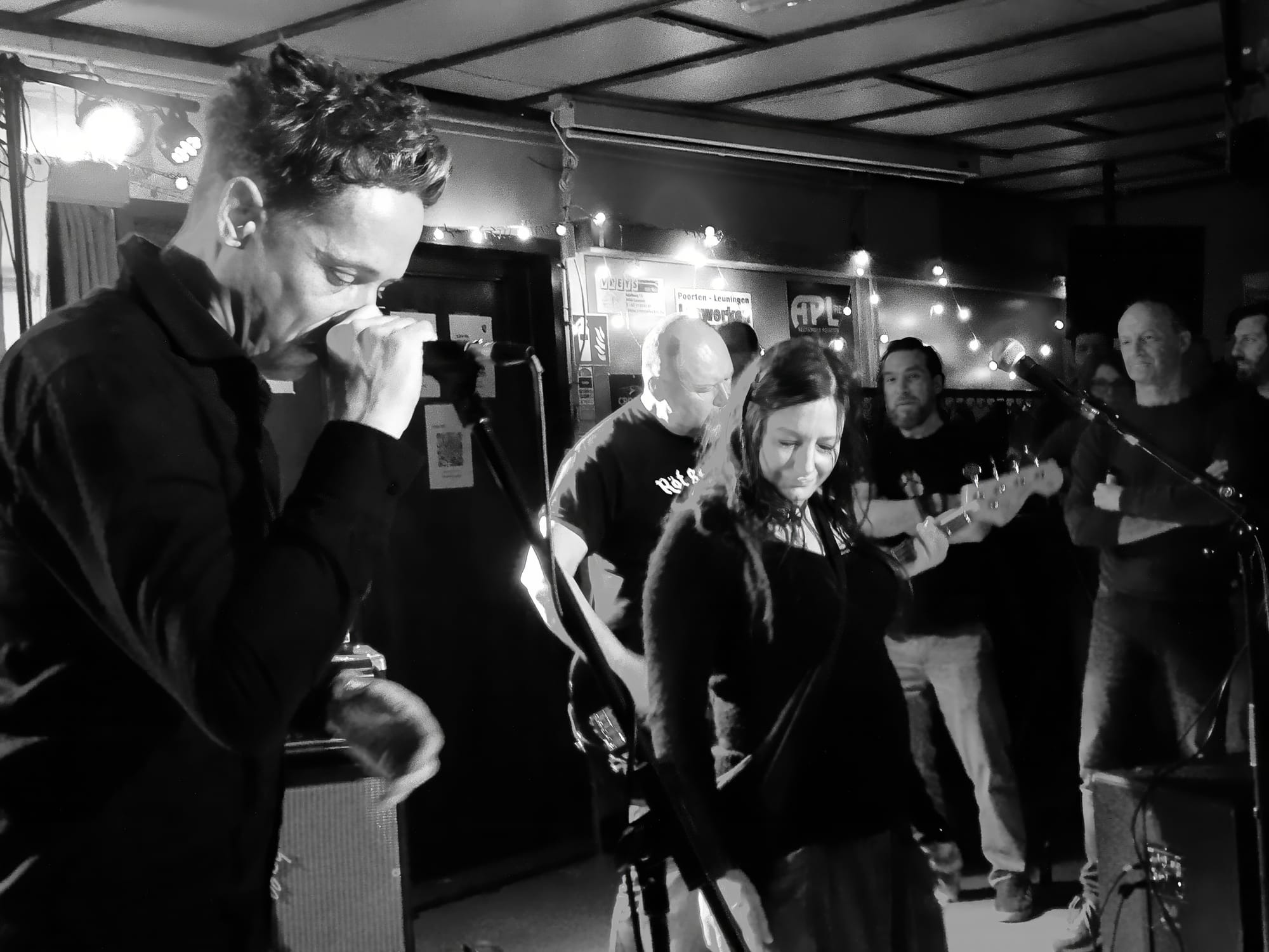 Op het podium zagen (en hoorden) we 'Frankie Traandruppel', We came as dirt, Johnny Flamingo en Dopey Dolts. Van lo-fi over punk tot alternative rock, erg veel afwisseling dus en een bijzonder enthousiast publiek. En in dat publiek... dar liep zelfs bekend volk rond, want wie kwamen we daar tegen, in het gezelschap van de organisatoren van Rockwood? Guy Swinnen, één van dé iconen uit onze Belgische rockscene...