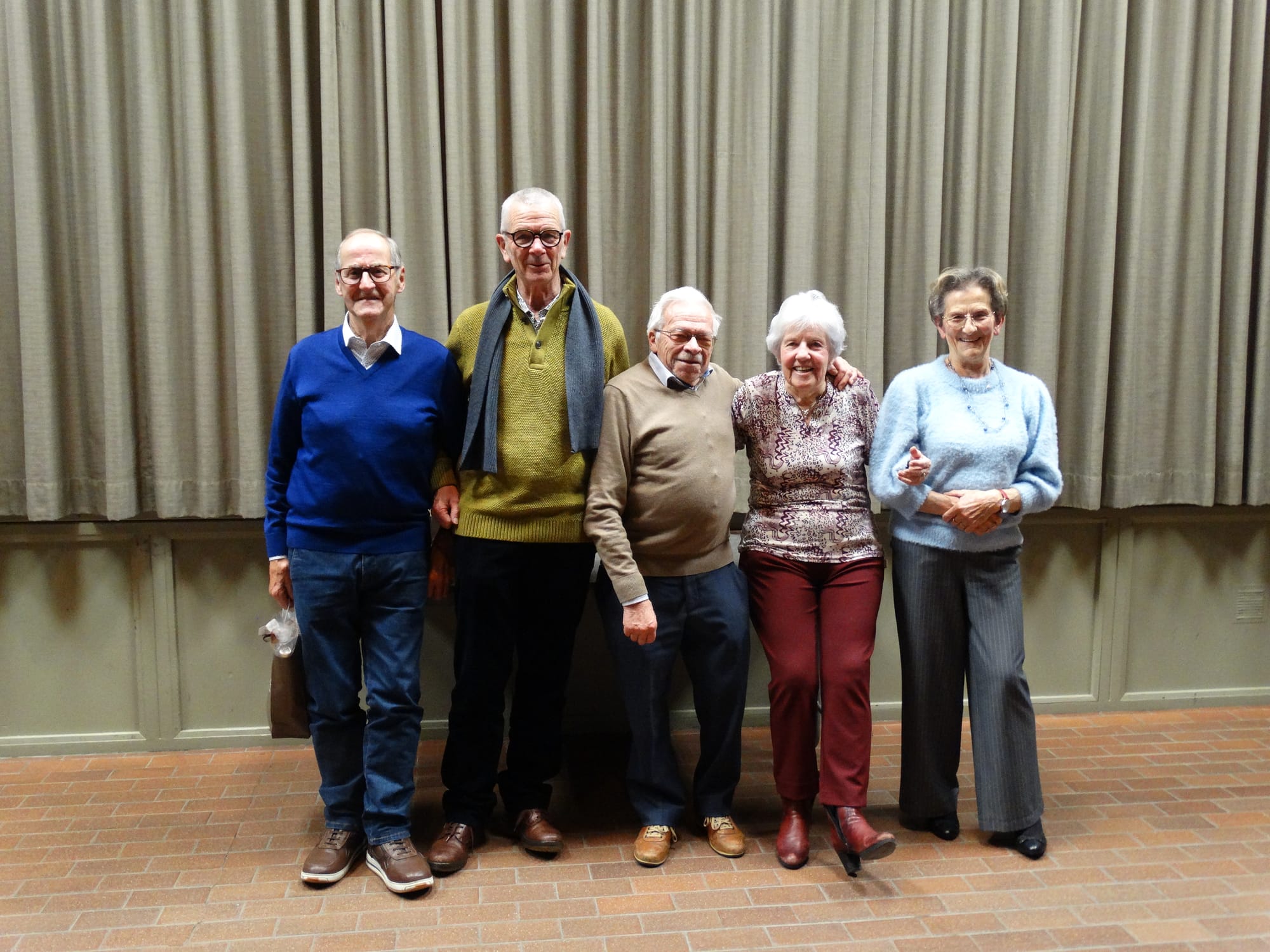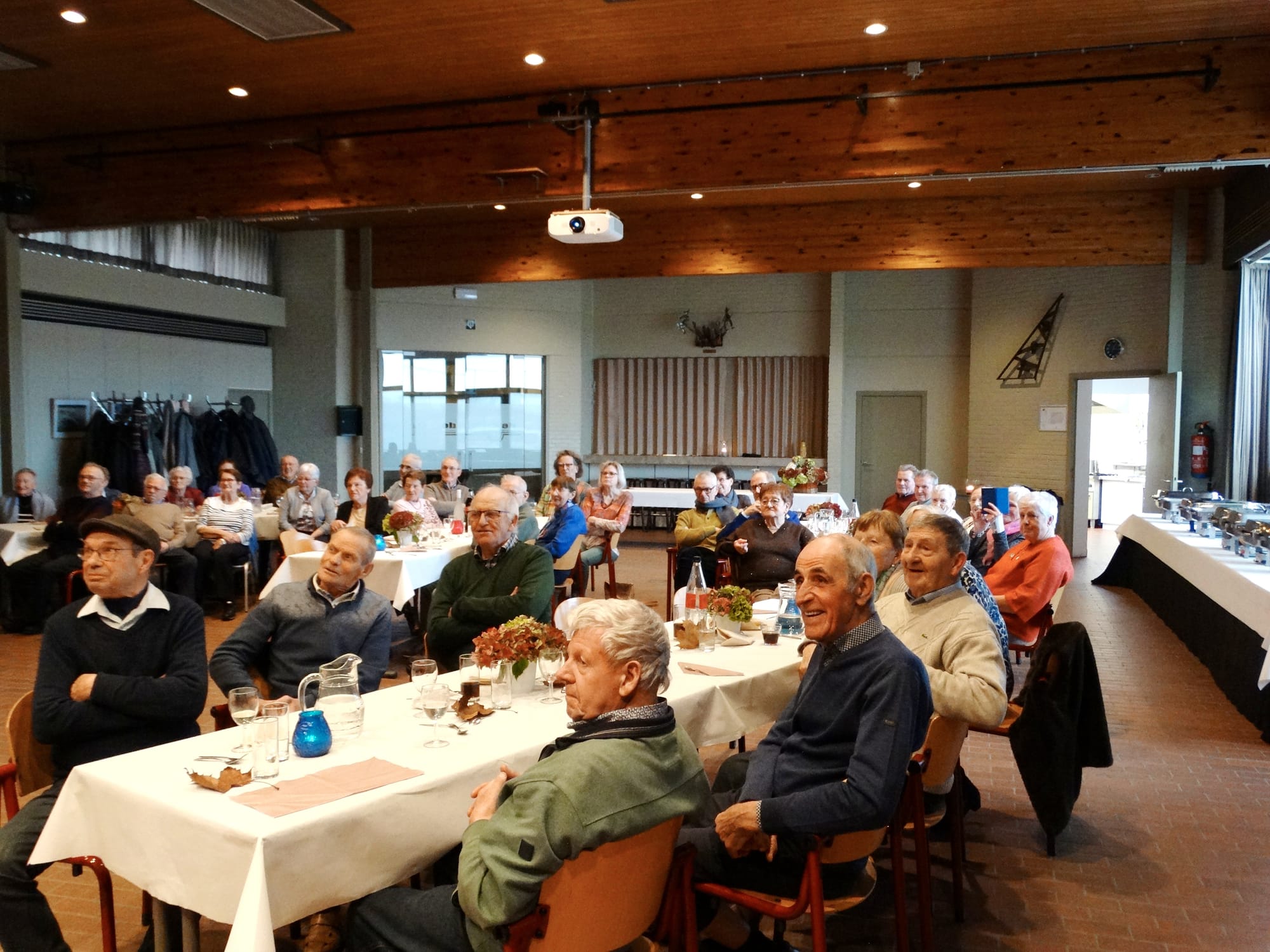 En vandaag werd er in ieder geval nog heerlijk gevierd, mét een heerlijk etentje, een toneelstukje en de viering van het uittredend bestuur: Marie Jeanne Hannes, Nelly Dingenen, Henri Nijs, Patrick Moelans en Bob De Cock (foto bovenaan)!