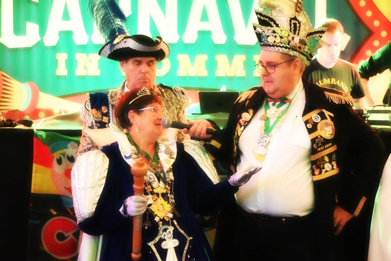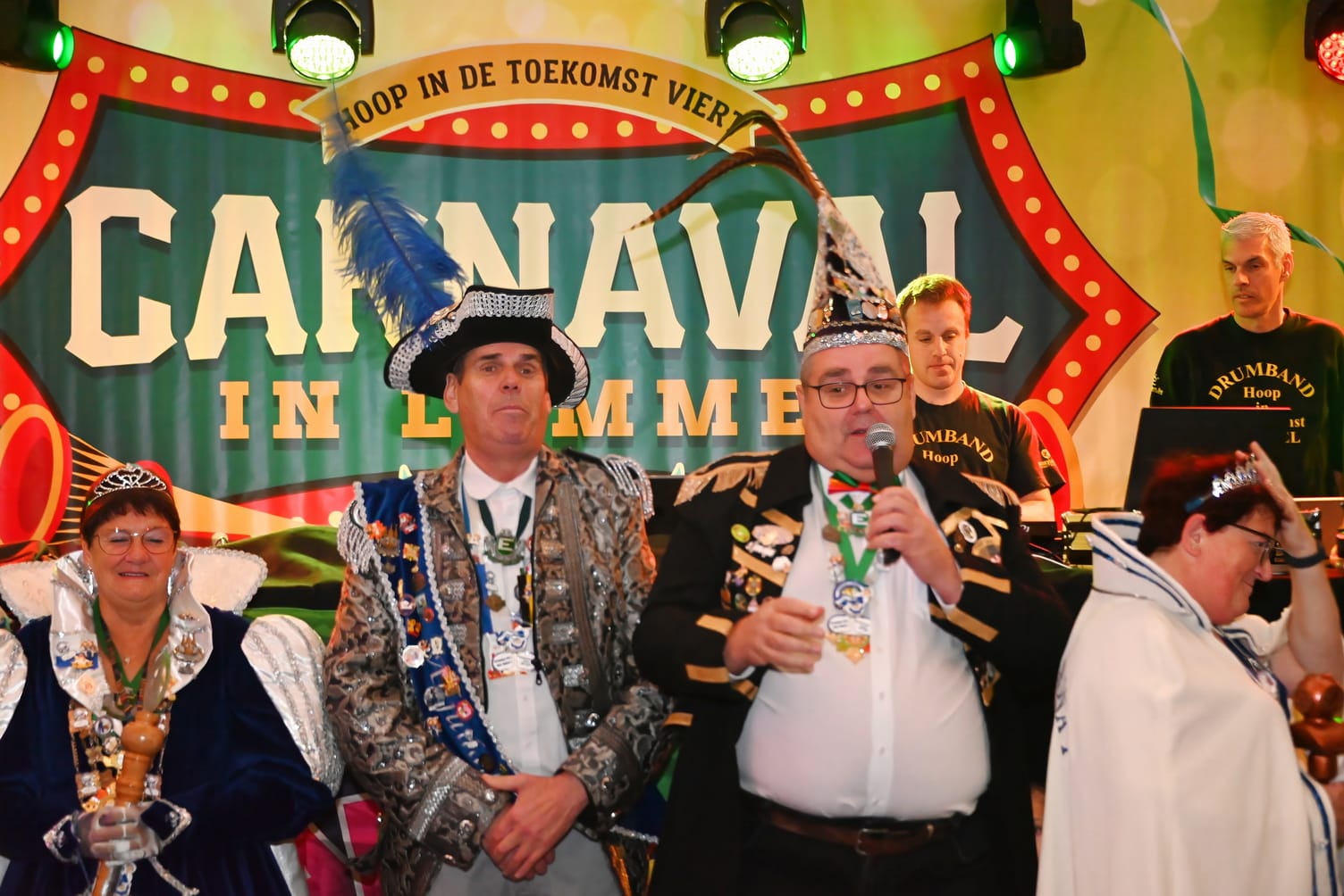 Voorzitter van Lommel Carnaval, Ronny Geysen, nam de honeurs waar, en verzamelde alle prinsen en prinsessen vooraan aan het podium, en na enkele toespraken en het zingen van het Limburgs volkslied, barstte de zaal van de Harmonie uit haar voegen van het feestgedruis! Meteen ook één van de laatste activiteiten voor Prinses Viv I, want binnen drie weken komt er een nieuwe prins (of weer prinses?). We houden u hiervan uiteraard op de hoogte!