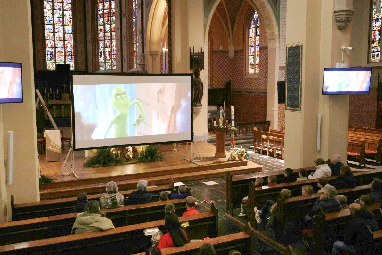 Gisterennamiddag kon u in de Sint-Pietersbandenkerk van het centrum terecht voor een (gratis) filmvertoning van 'De Grinch'. Organisator was het Franciscushuis, die hiermee niet aan hun proefstuk toe waren, en telkens lokte dit redelijk wat volk, vooral kids, naar de kerk... Gisteren waren ze met bijna 100 aanwezigen, toch erg moi te noemen!
