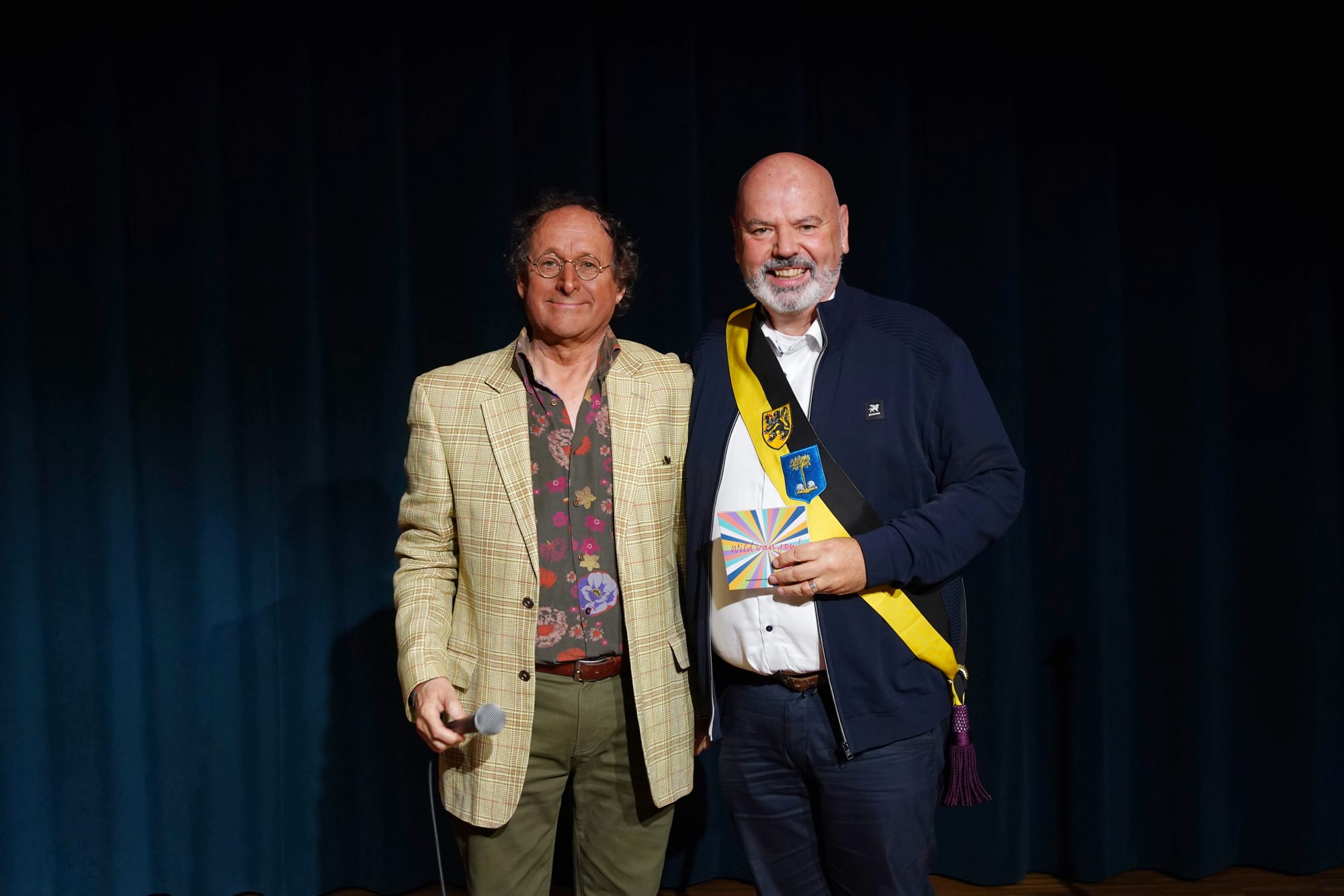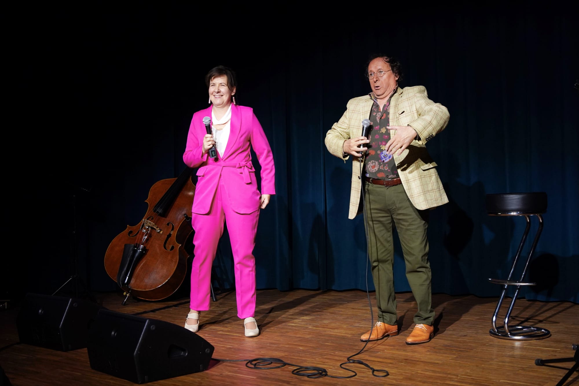 Vanmiddag was het dan (eindelijk) zover... Nederlands cabaretier Bart de Groof kon eindelijk zijn eerste CD voorstellen in CC De Adelberg. Daarop staat tevens een duet (het titellied trouwens...) met onze Lommelse sopraan Anja Van Engeland en het eerste exemplaar was bestemd voor schepen van cultuur Peter Vanderkrieken.