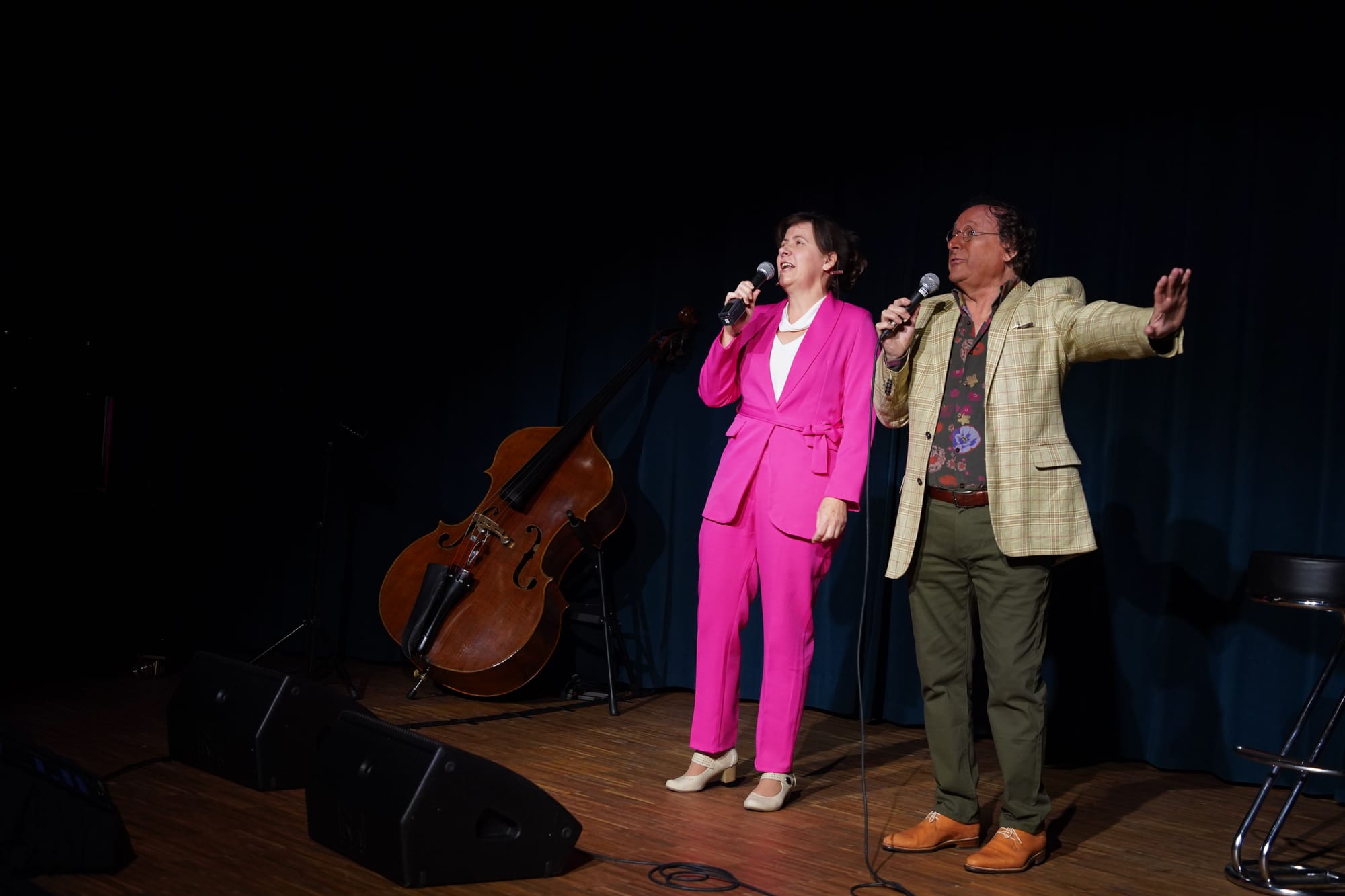 De geplande cd-presentatie in mei van dit jaar ging door omstandigheden niet door, maar vandaag dus wél met muzikanten Lucas Beukers (contrabas), Fons Toonen (slagwerk) en sopraan Anja van Engeland. Cabaretier-chansonnier Bart de Groof heeft besloten om de presentatie tóch doorgang te laten vinden ondanks het overlijden van zijn pianist en initiator van dit cd-project: Frans van der Tak. Hij overleed plotseling op 23 augustus jongstleden. Tweeëntwintig jaar waren Bart en Frans in artistiek opzicht onlosmakelijk met elkaar verbonden, zij traden op in Nederland en soms in Vlaanderen.