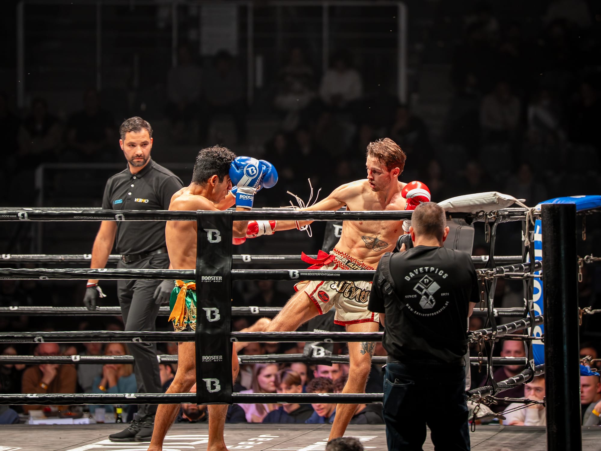 In de Soeverein vond gisteren de 25ste editie van het vechtsportgala ‘Fights at the Border’ plaats. De hoofdkamp was de ISKA-titelkamp in de klasse -63 Full Muay Thai tussen de Spanjaard Dennis Lara en Lommelaar Bas Van Dijk die dit jaar een lange reis ondernam. “Het wordt mijn eerste grote kamp na zeven maanden Thailand”, aldus Bas op voorhand. En hij wist deze wedstrijd ook met glans te winnen!