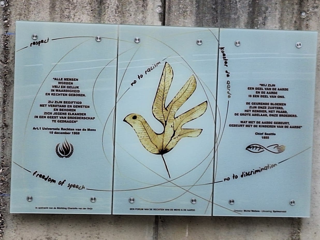 Een kunstwerk dat in 2018 werd geplaatst in het Prinses Astridpark aan De Adelberg, Forum van de Rechten van de Mens, is al geruime tijd niet meer volledig. Meer nog, een belangrijk onderdeel is lange tijd spoorloos geweest, namelijk de grote glazen plaat met daarop centraal artikel 1 van de Universele Verklaring van de Rechten van de Mens, die in 2019 werd beschadigd door vandalen.