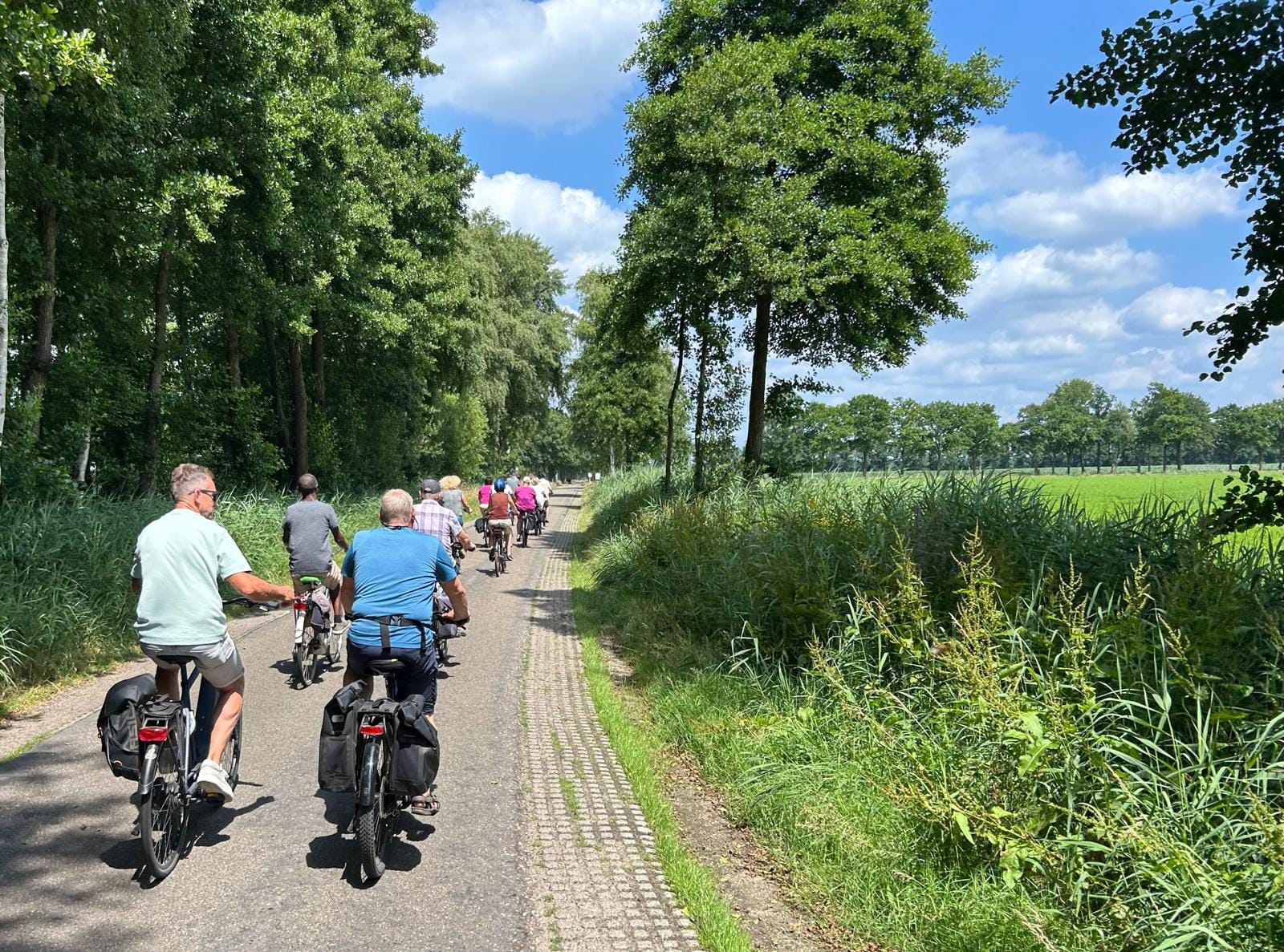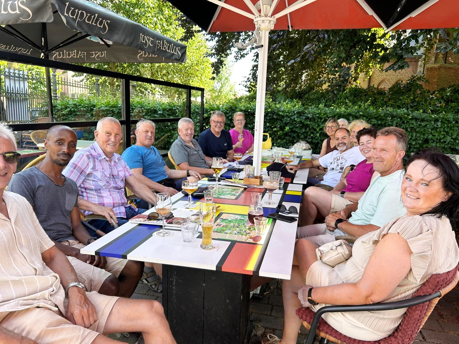 Rond 13h00 verzamelden 14 dapperen bij de Soeverein voor een tocht van exact 42.195 kilometer. Het was, met 30 graden, lekker warm, maar op de fiets viel toch nog mee. Via het fietsroutenetwerk ging de tocht via Luyksgestel naar het marktplein in Bergeijk.