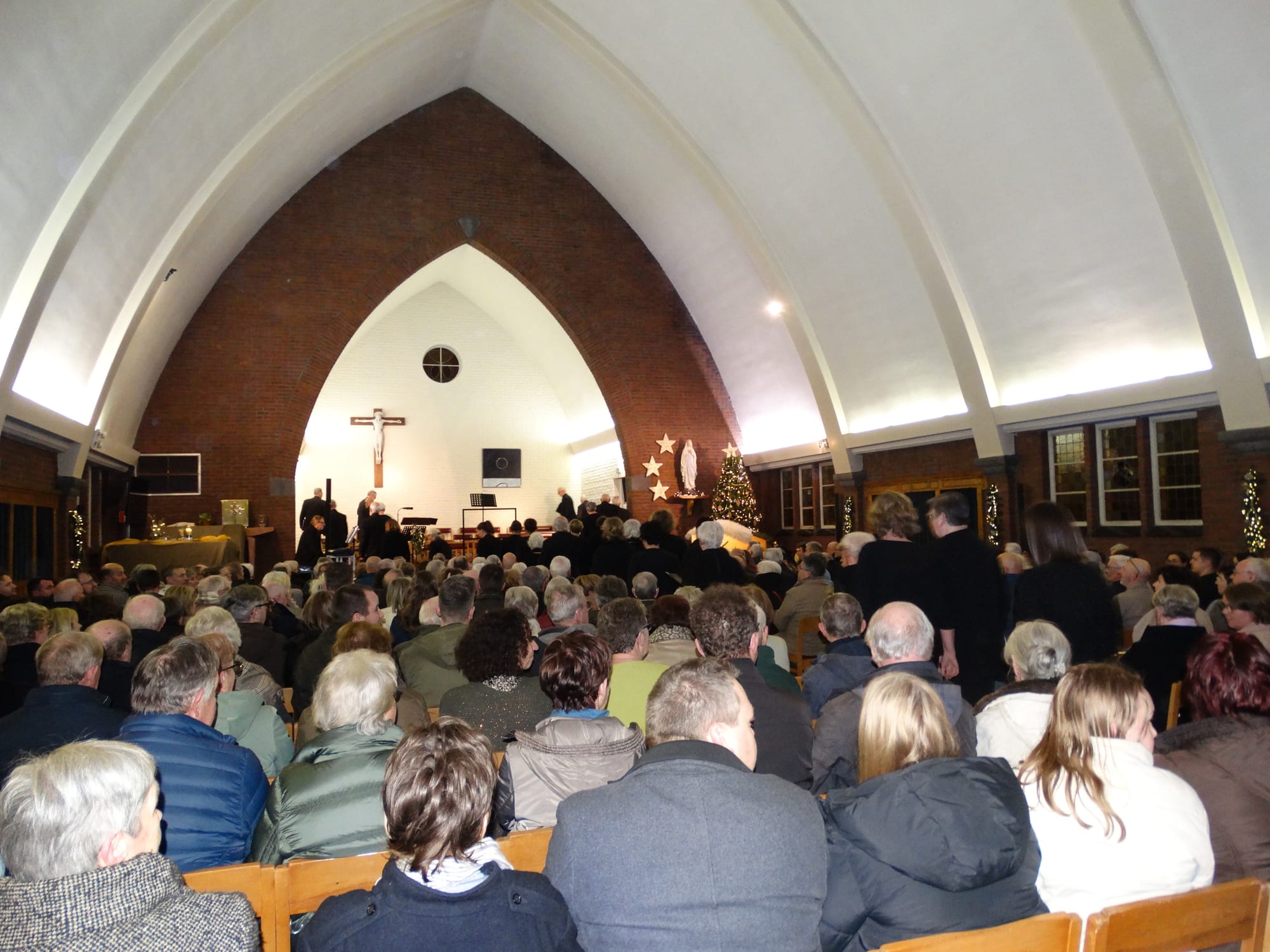 Gisteren brachten we reeds verslag vande algemene repetitie van dit concert, maar gisterenavond was het dan 'voor écht'... Gisterenavond bracht koor Het Daghet in een bomvolle kerk van Heide-Heuvel hun jaarlijkse kerstconcert onder de titel ‘For unto us’. Onder leiding van dirigent Jeroen Driessens en met pianobegeleiding van Jean-Marie Van Broeckhoven kreeg het publiek waarvoor ze gekomen waren: zowel klassieke als moderne kerstmuziek. En ook ging het koor zéér internationaal... van Scandinavische klanken tot een song uit Oekraïene ...