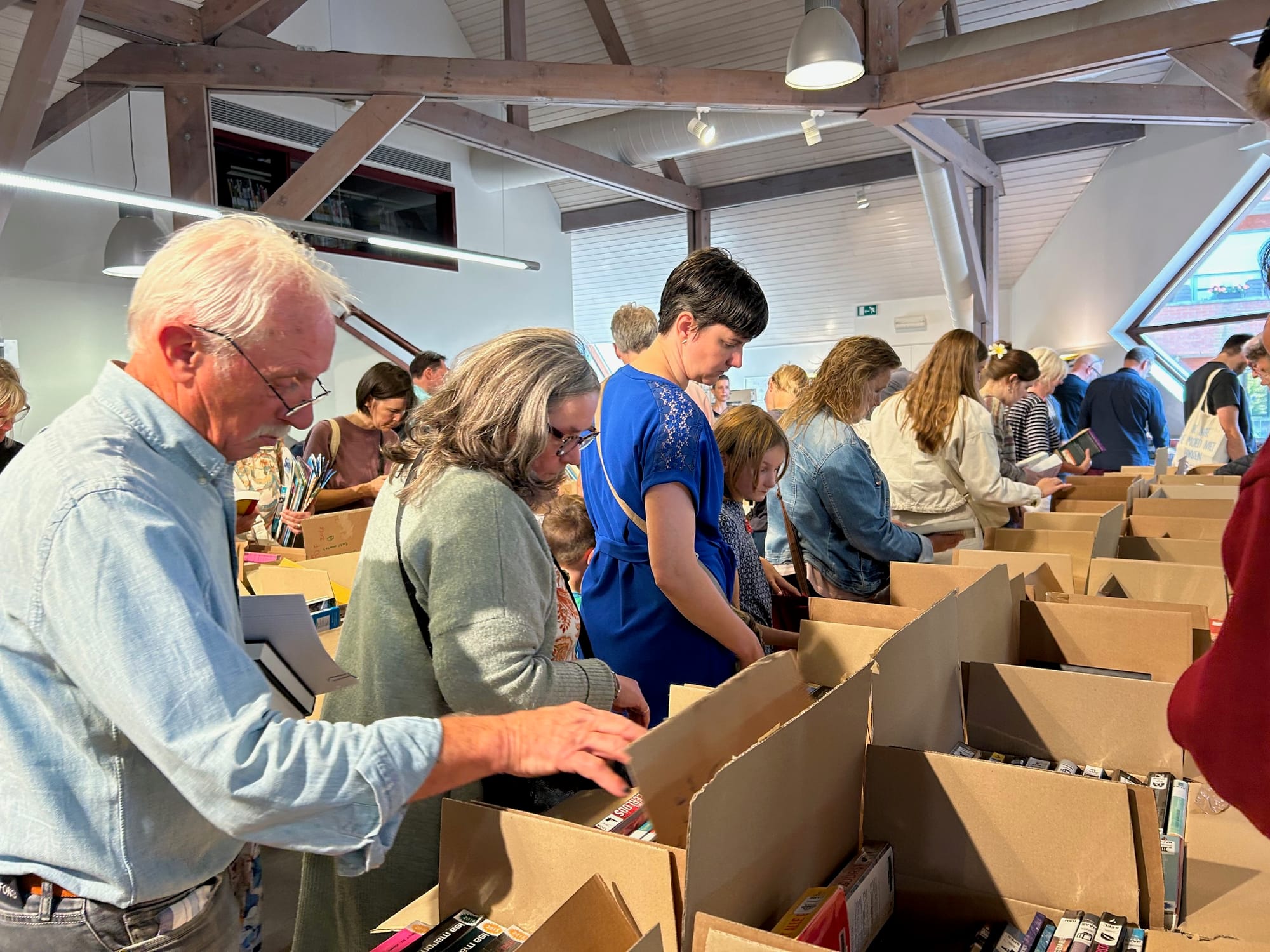 Vorig weekend was er al een drukke CD en DVD verkoop in onze bibliotheek, maar vandaag was het zover mogelijk nog veel drukker voor de boekenverkoop.