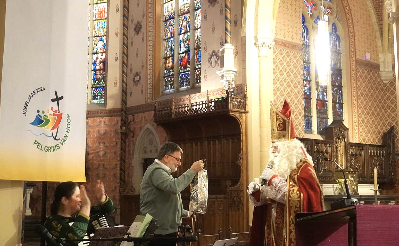 Ook was er nog een speciaal cadeautje van de Sint voor Marc Devroede die na 40 jaar de muzikale stem te zijn geweest van de jongerenkerk er nu mee stopt.