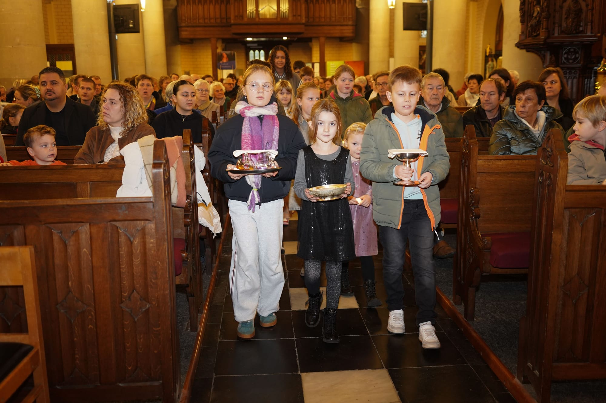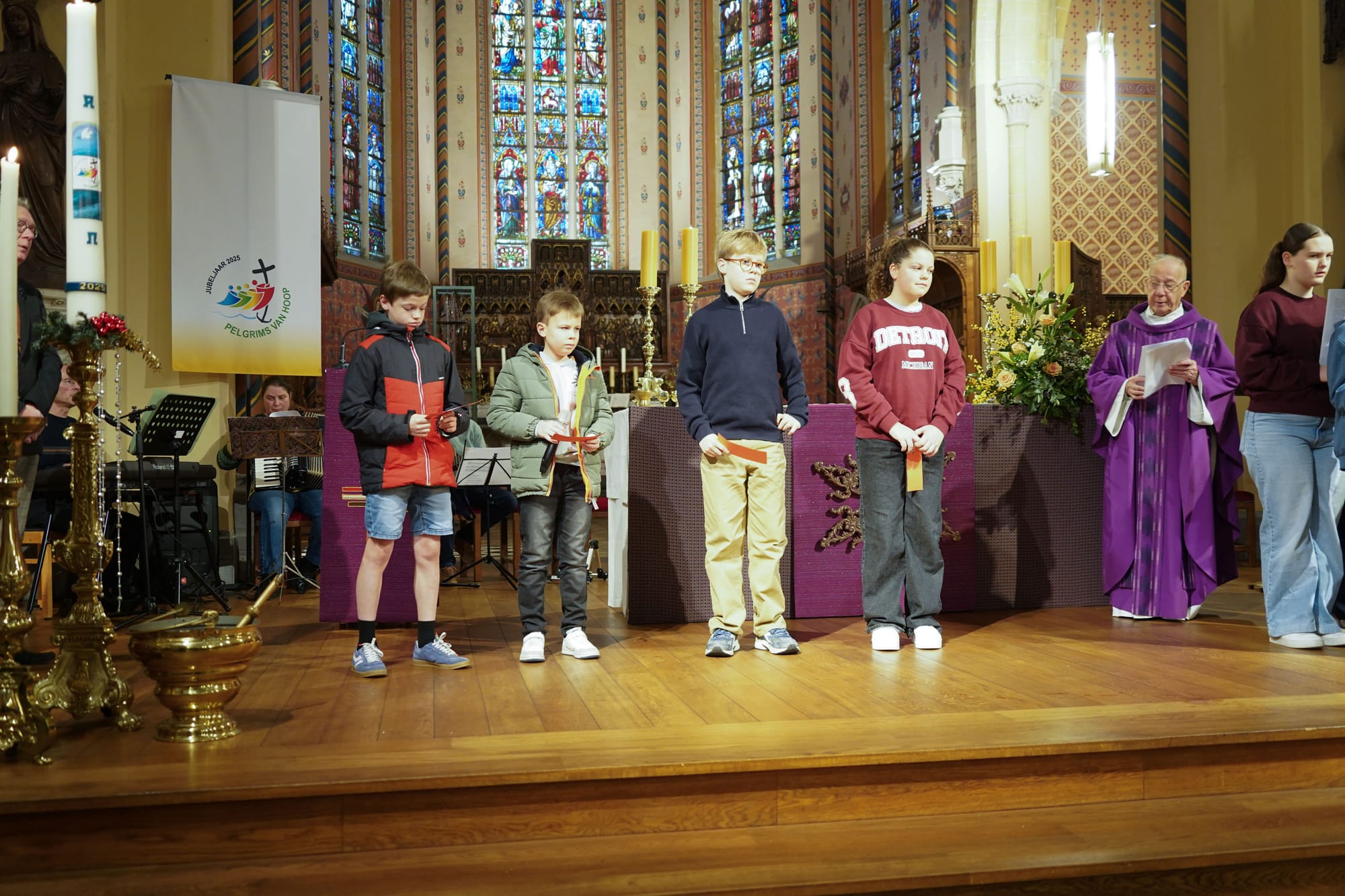 Vandaag was er in de kerk van Lommel-Centrum een bijzondere kinderviering. De kerk vulde zich met blije gezichten van kinderen en de vormelingen van 2026.