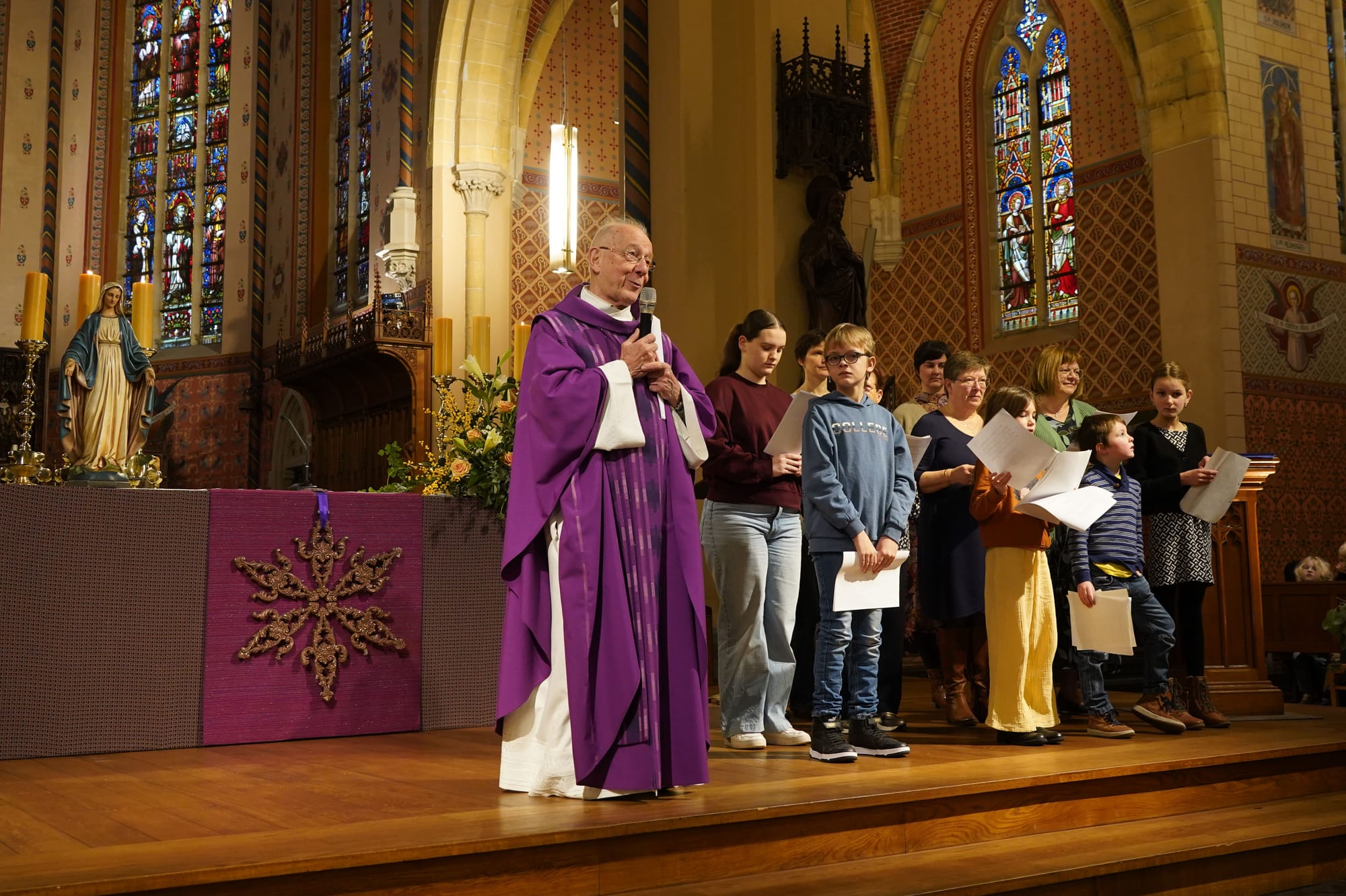 Pater Maurice bracht samen met de pastorale eenheid Emmaüs een mooie en betekenisvolle viering. Een speciaal moment was de zegening van de adventskrans, waarbij de kaarsen werden aangestoken en genoemd naar de vier engelen – een symbool van licht en hoop in deze adventstijd. En alsof dat nog niet genoeg was, werden de kinderen verrast door een bezoek van de heilige man en zijn hulp Piet, die met hun komst voor extra vreugde en verwondering zorgden.
