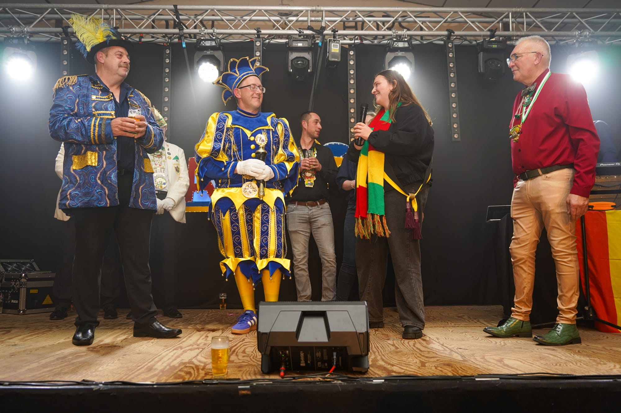 Een bijzonder moment van de avond was de onthulling van de nieuwe nar van CV De Rakkers. Onder luid applaus werd Nar Danny, bijgestaan door adjudant Harry, voorgesteld aan het feestende publiek.