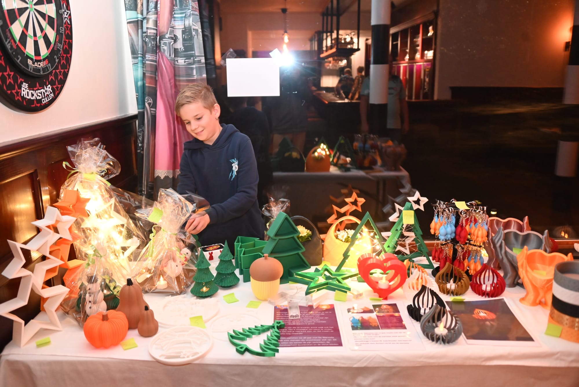 Tijdens de opening vanavond stond de jonge Valentino (eerste foto onderaan) er ook om eigengemaakte spulletjes te verkopen ten voordele van 'De Warmste Week'...