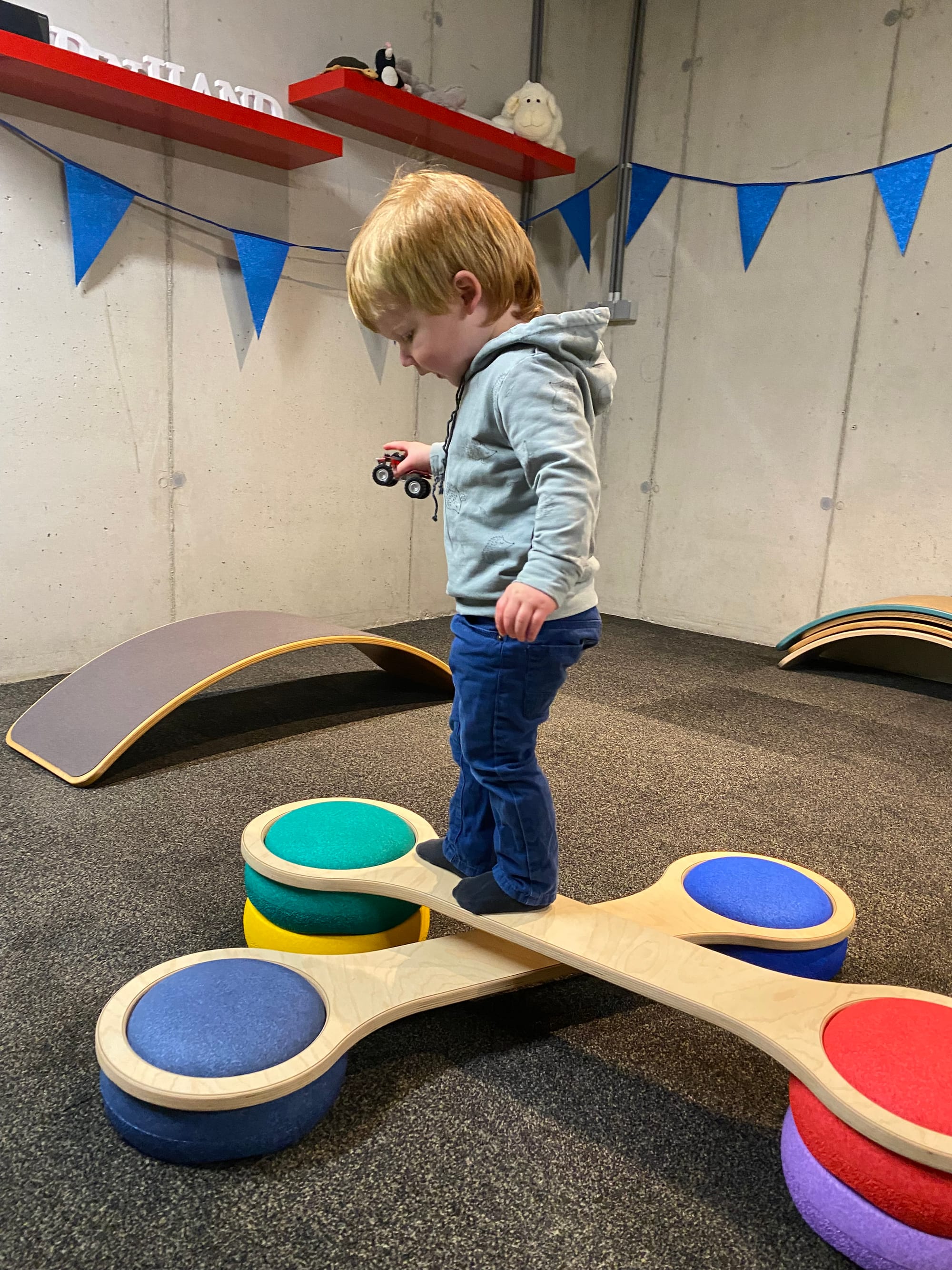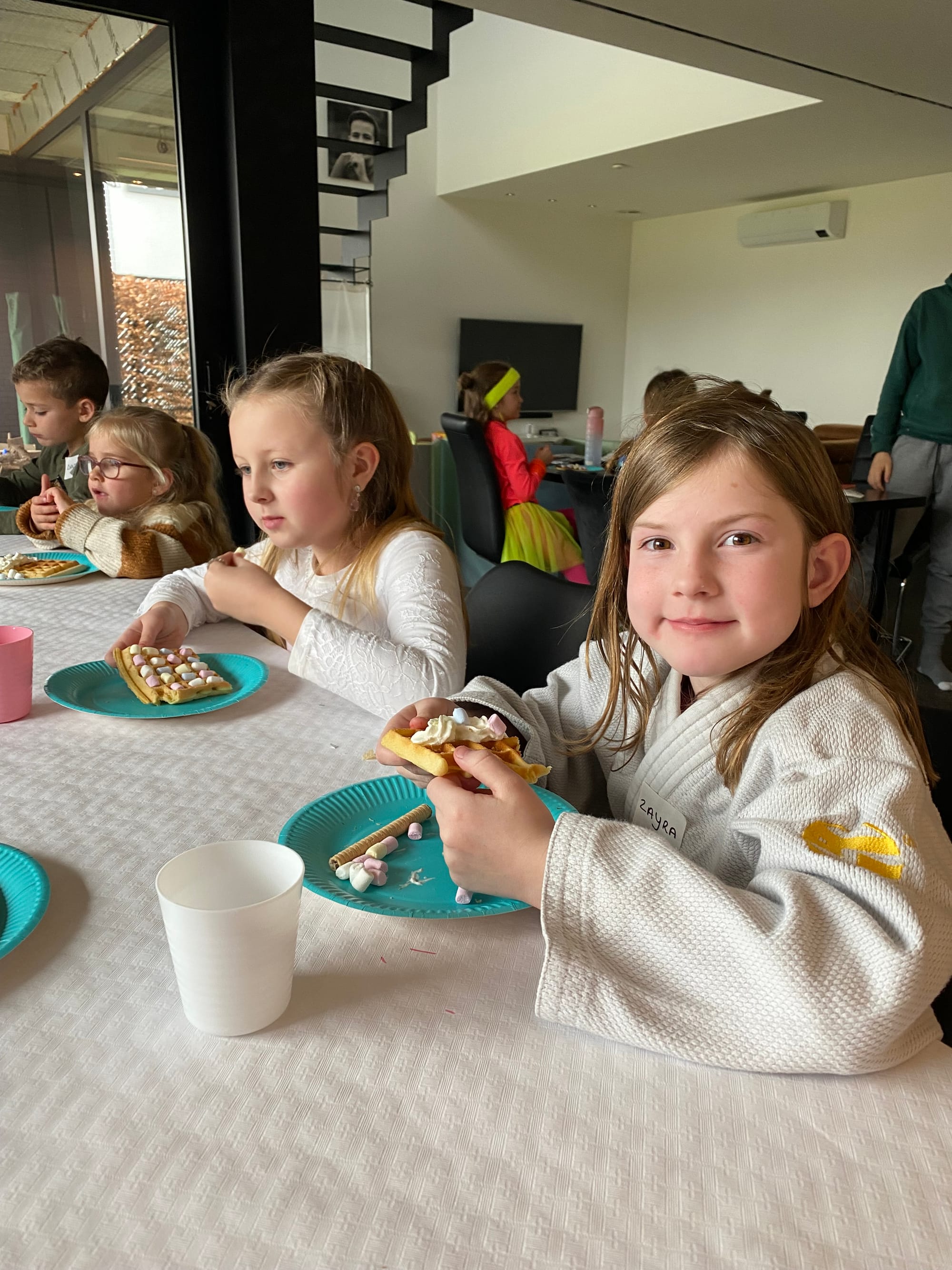 Ze hebben samen geknutseld, verse wafels met slagroom gegeten, buiten gespeeld in de tuin en een reuze parcours gemaakt met wobbels.
