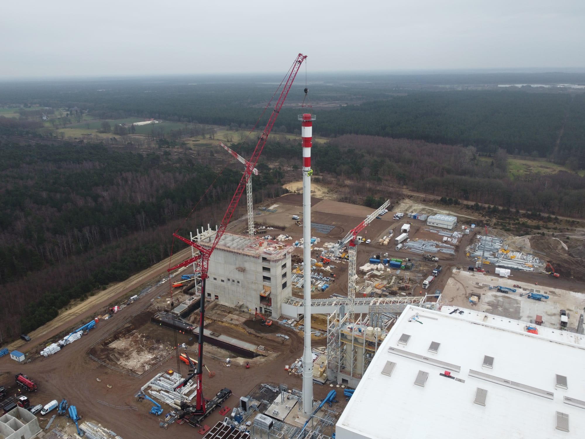 Het plaatsen van deze schoorsteen is tevens een symbolisch sluitstuk van de opbouw van de gehele site. "Binnen twee jaar is de gehele fabriek operationeel, maar reeds deze zomer is het eerste gedeelte klaar en kunnen we al 'op halve kracht' van start gaan, terwijl de bouw van het tweede gedeelte dus nog verder gaat", ook nog volgens dhr. Bloemen.