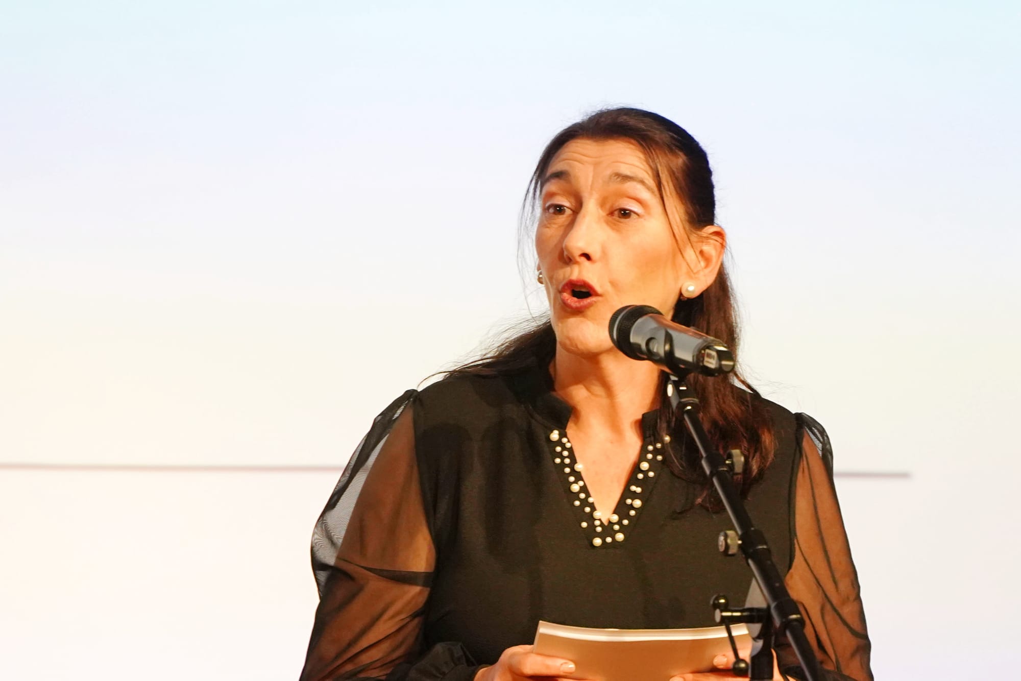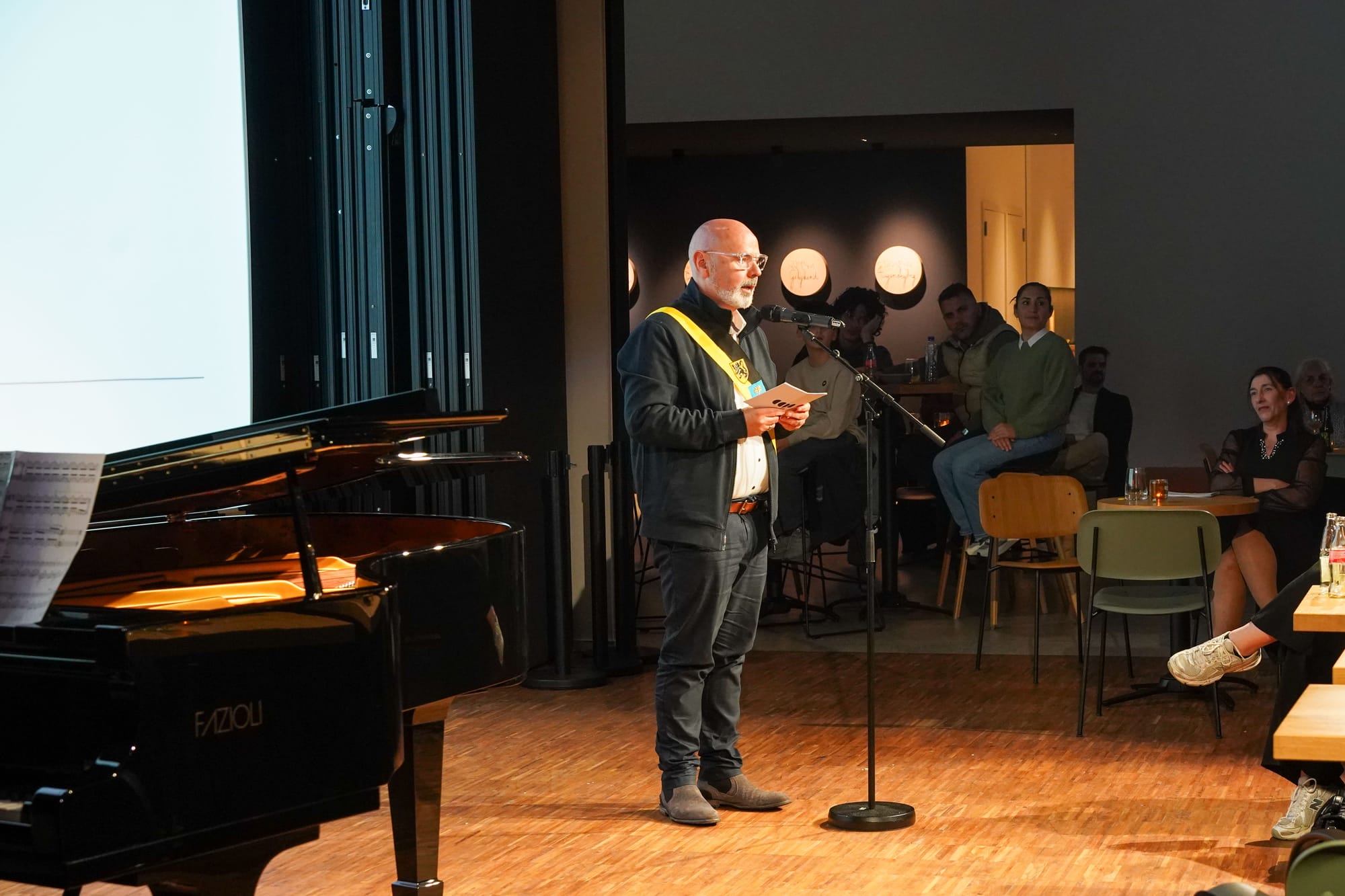 En vanmiddag was er een plechtig moment, mét uiteraard ook dans, in de Kleine zaal van CC De Adelberg waarbij Christine de prijs dan officieel mocht in ontvangst nemen, dit begeleid door pianomuziek en met toespraken door schepen Peter Vanderkrieken, Diederik Celis en Karla Deroost. Deze laatste had het vooral over het prille begin van de carrière van Christine, Dhr. Celis had het dan weer over een dame die "streng maar rechtvaardig was, met opbouwende kritiek en een groot hart. Ze was zowel topsporter, therapeut, verkeersleider en diamantslijper tegelijk". En schepen Vanderkrieken benadrukte vooral veel respect en hulde... "Hulde voor haar jarenlange engagement, respect voor haar passie, geduld en standvastigheid", aldus de schepen.