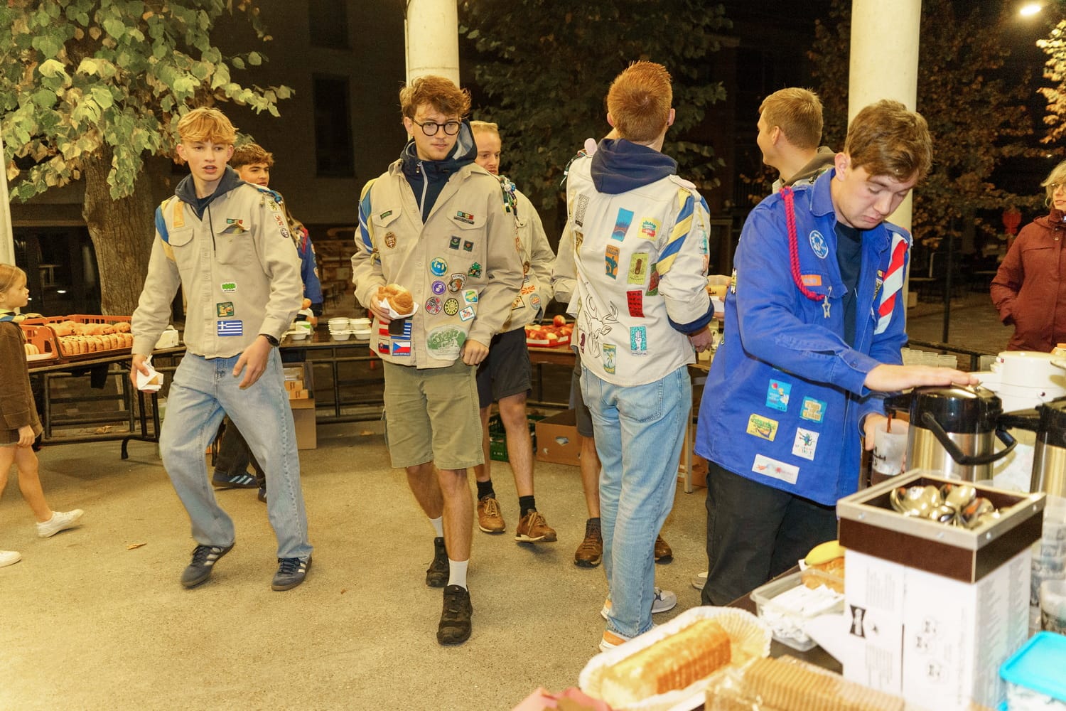 Het wqs weer een drukte van jewelste vanochtend aan de kiosk op het marktplein... Van jong tot oud, alle leden van een jeugdbeweging kwamen daar samen voor naar school te vertrekken en werden getrakteerd op broodjes, koffiekoeken, een stuk fruit en een drankje. Maar wat primeerde was zeker toch het samenhorigheidsgevoel dat zo typisch is aan een jeugdbeweging...