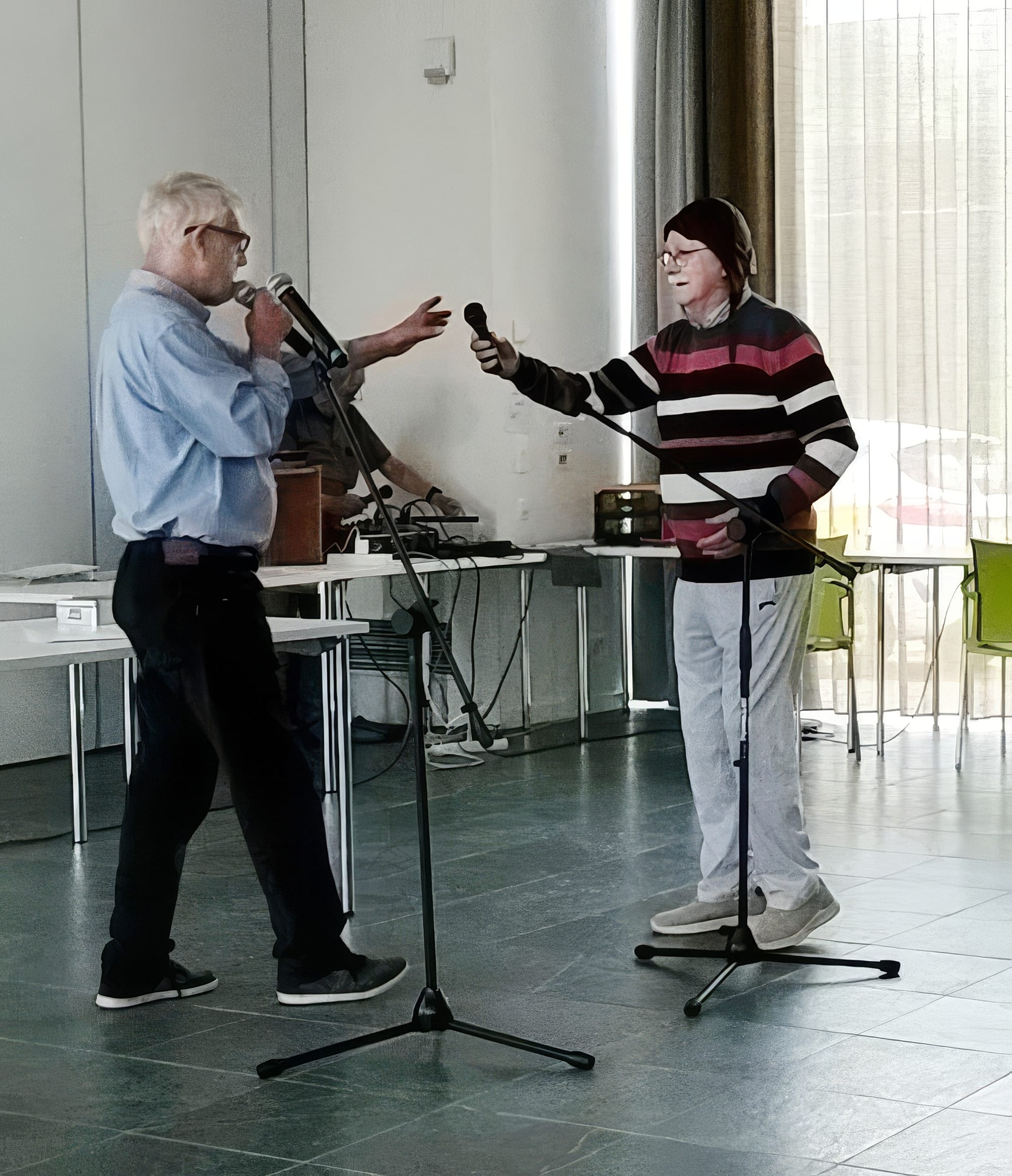 Na enkele maanden repeteren vond gisteren de première plaats van het allereerste optreden van 'de Kapitteltjes'. Dit is de toneelgroep die vrijwilliger Harry uit de grond gestampt heeft met enkele bewoners van WZC Kapittelhof. Tussen de acts door zorgde zanger George voor een muzikale noot.