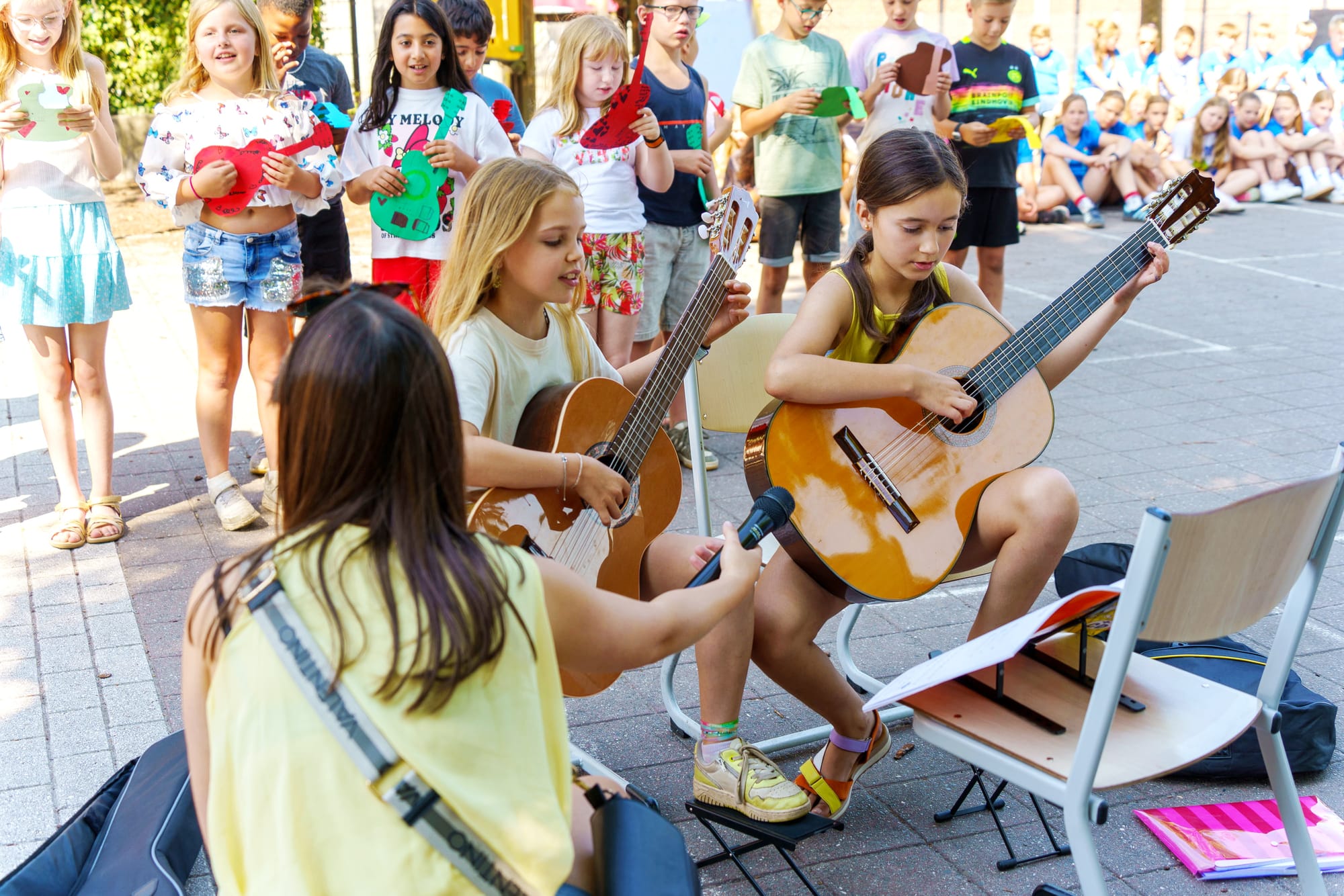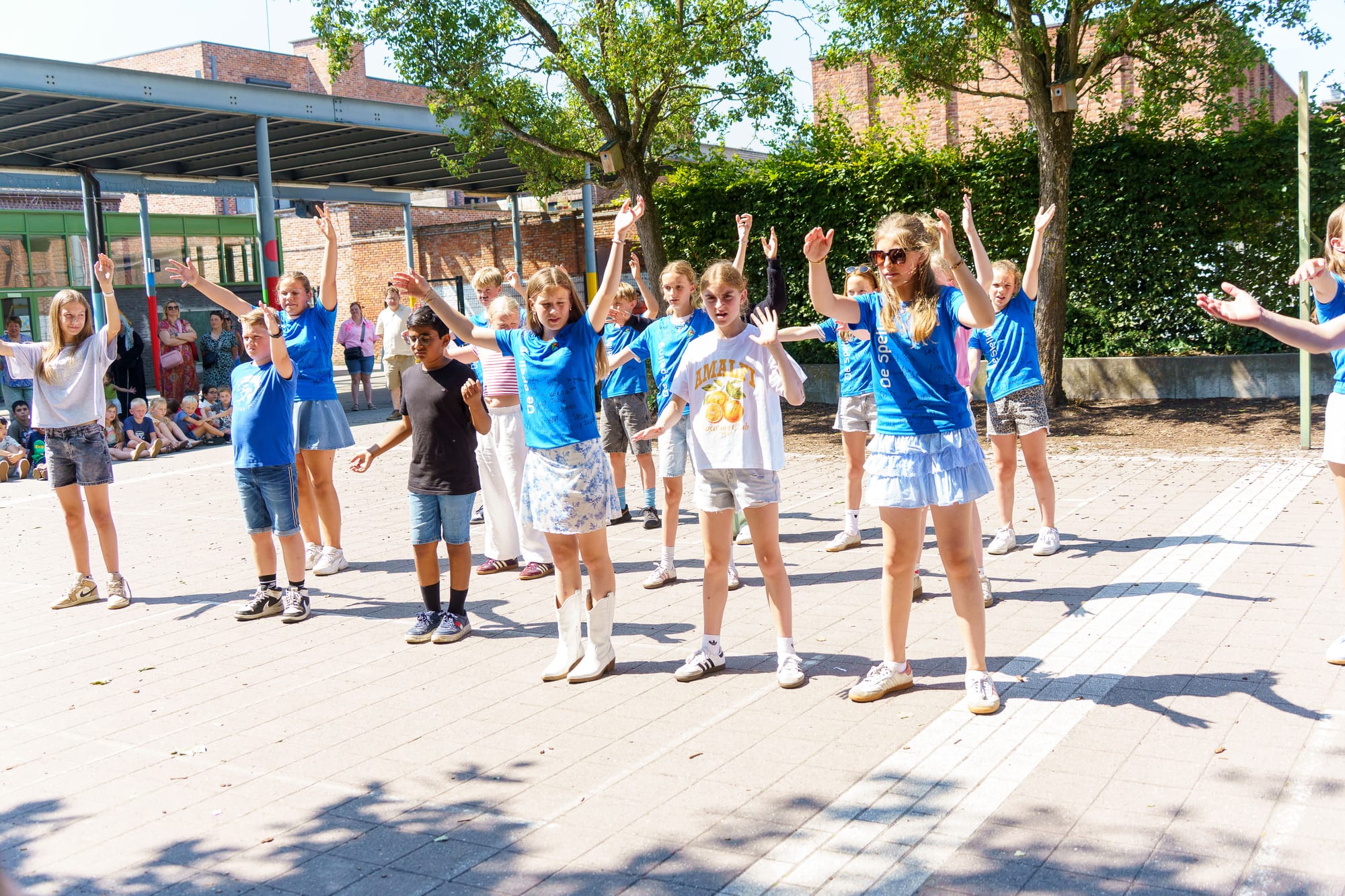 Na het vrolijke K3-spektakel was het de beurt aan de kinderen. Speciaal voor de laatste schooldag én als eerbetoon aan hun juffen, gaven zij ook diverse optredens. Het was een ontroerend en feestelijk afscheid, vol blije gezichten en mooie herinneringen.