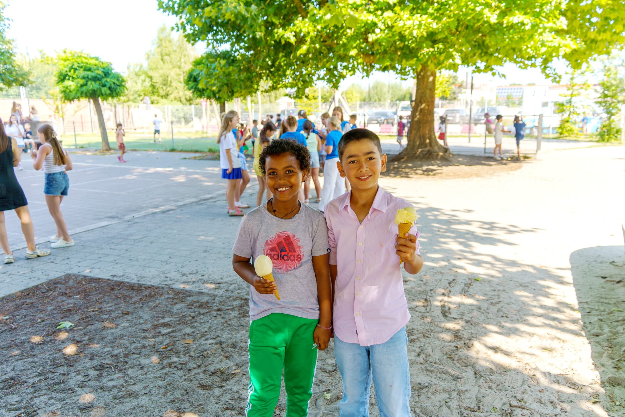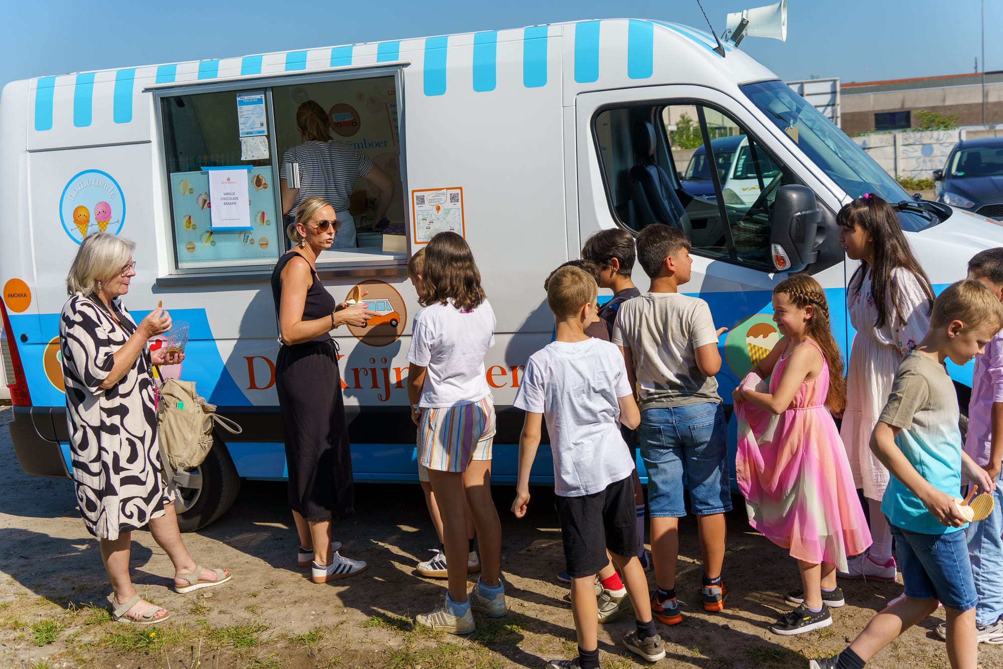 Om de feestelijke dag helemaal compleet te maken, werden alle aanwezige kinderen getrakteerd op een verfrissend ijsje van de lokale ijsboer. Een zoete afsluiter van een onvergetelijke dag voor de gepensioneerde juffen en hun leerlingen.