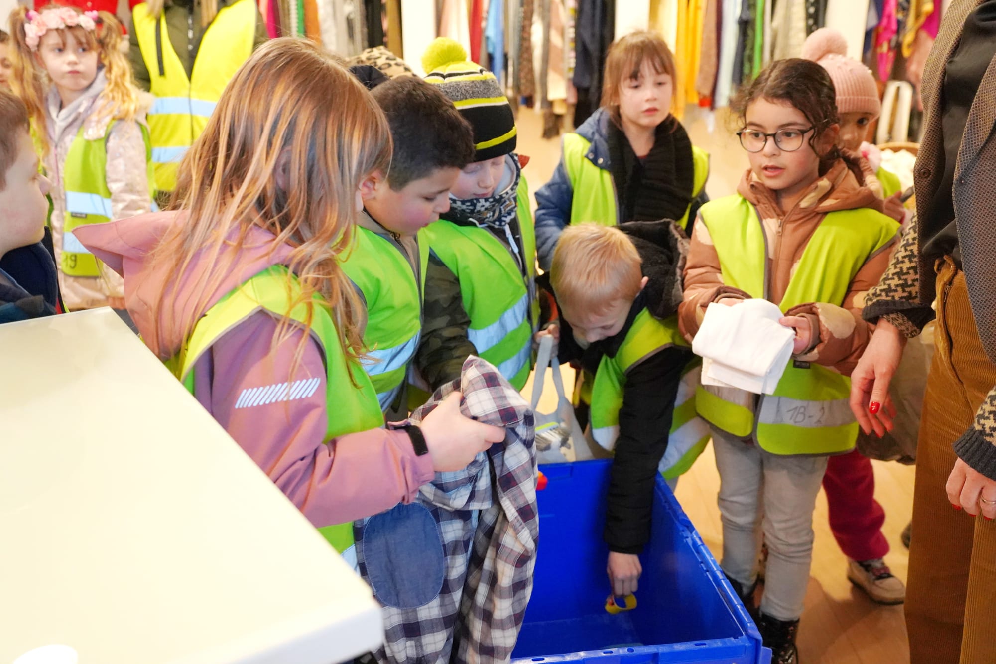 Ze leerden er ook dat speelgoed naar de andere kringloopwinkel in de Stationsstraat moet gebracht worden. Ze kregen er uitleg hoe het er allemaal aan toeging, zoals hoe het prijzen en sorteren gebeurde. Ze hadden ook het goedkoopste en het duurste kledingstuk moeten gaan zoeken. Het was een leuke én leerrijke namiddag voor beide klasjes...