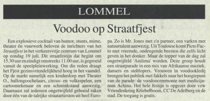 Eind jaren '90 kon je in ons centrum terecht voor het 'Straatfjest', specifiek op zondag 19 juli 1998. Als pure nostalgie hierbij een reeks foto's van toen...