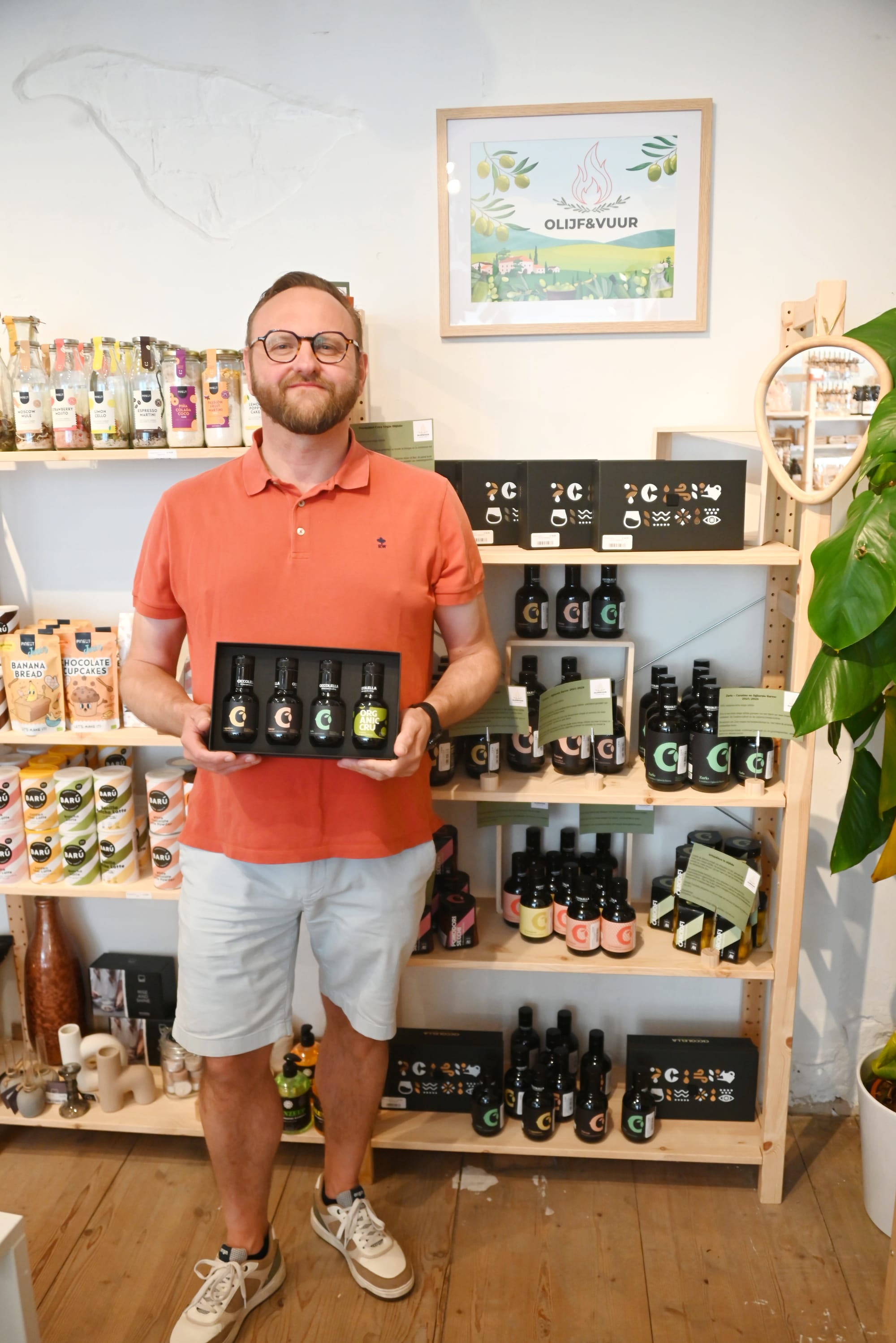 Eerder deze week hadden we een gesprekje met Dirk Vandenberk in 'Gifts and Dreams' in de Kerkstraat, want sinds kort is ook hij daar aanwezig met een rek vol lekkers, nl. heerlijke olijfolies onder de firmanaam 'Olijf & Vuur'.