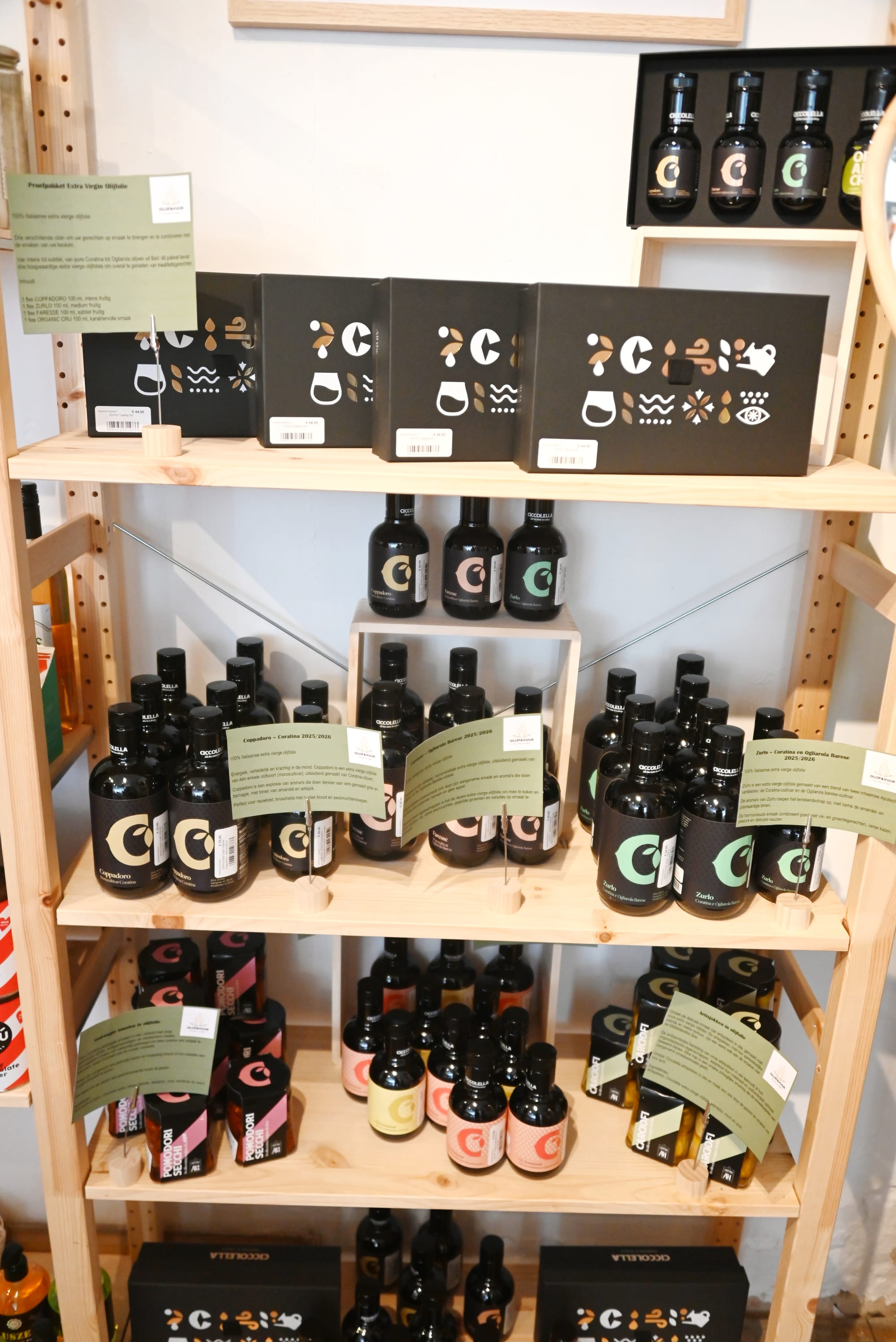 Dirk vertelde ons erg gepassioneerd over dit initiatief, dat feitelijk eerder toevallig 'geboren' werd op reis in Italië, in Puglia. Hij maakte daar kennis met de olijolie van Ciccolella en was meteen verkocht, niet alleen omwille van de bijzondere smaak, maar ook omwille van de zuiverheid van het product. En zo werd hij plots de enige verdeler van dit product in heel België!