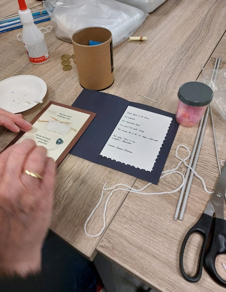 Met 15 creatievelingen kwamen ze gisteren - maandag - samen in het Franciscushuis. Op het programma stond het maken van kerst- en nieuwjaarskaarten. Symbolisch breiden ze een stukje 2025 dat met een draad verbonden werd met 2026. Binnenin stond een fijne wens voor Kerst en Nieuwjaar. Tussendoor was er natuurlijk tijd voor koffie, koek en fijne babbels.