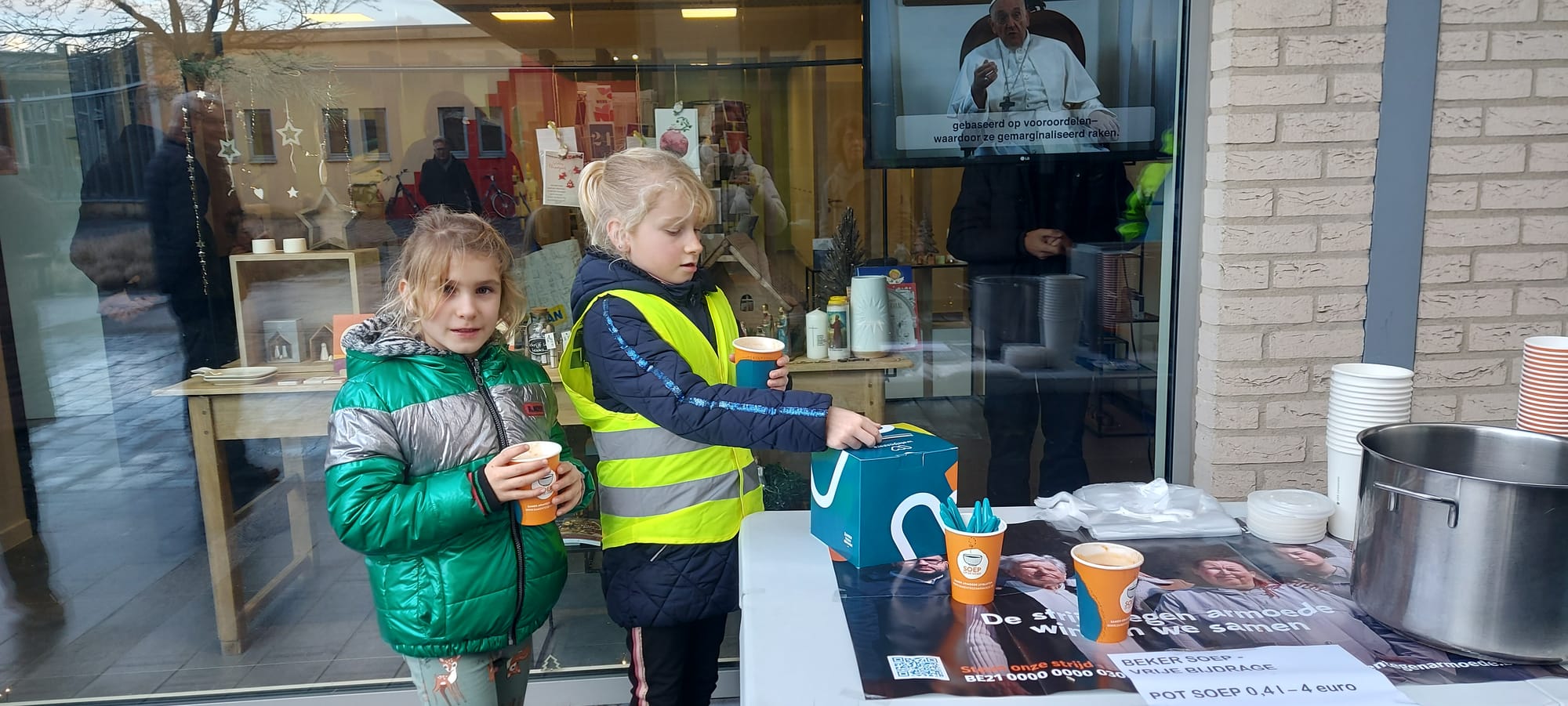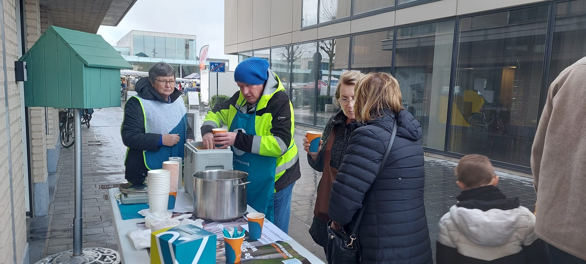 Vanmiddag kon je tijdens de wekelijkse markt in en aan het Franciscushuis terecht voor een heerlijke kop soep en/of een lekker tasje koffie... Dit alles kaderde in de aandacht die gevraagd werd voor diegenen die het ietsje 'minder goed' hebben in onze maatschappij, aandacht voor armoedebestrijding!