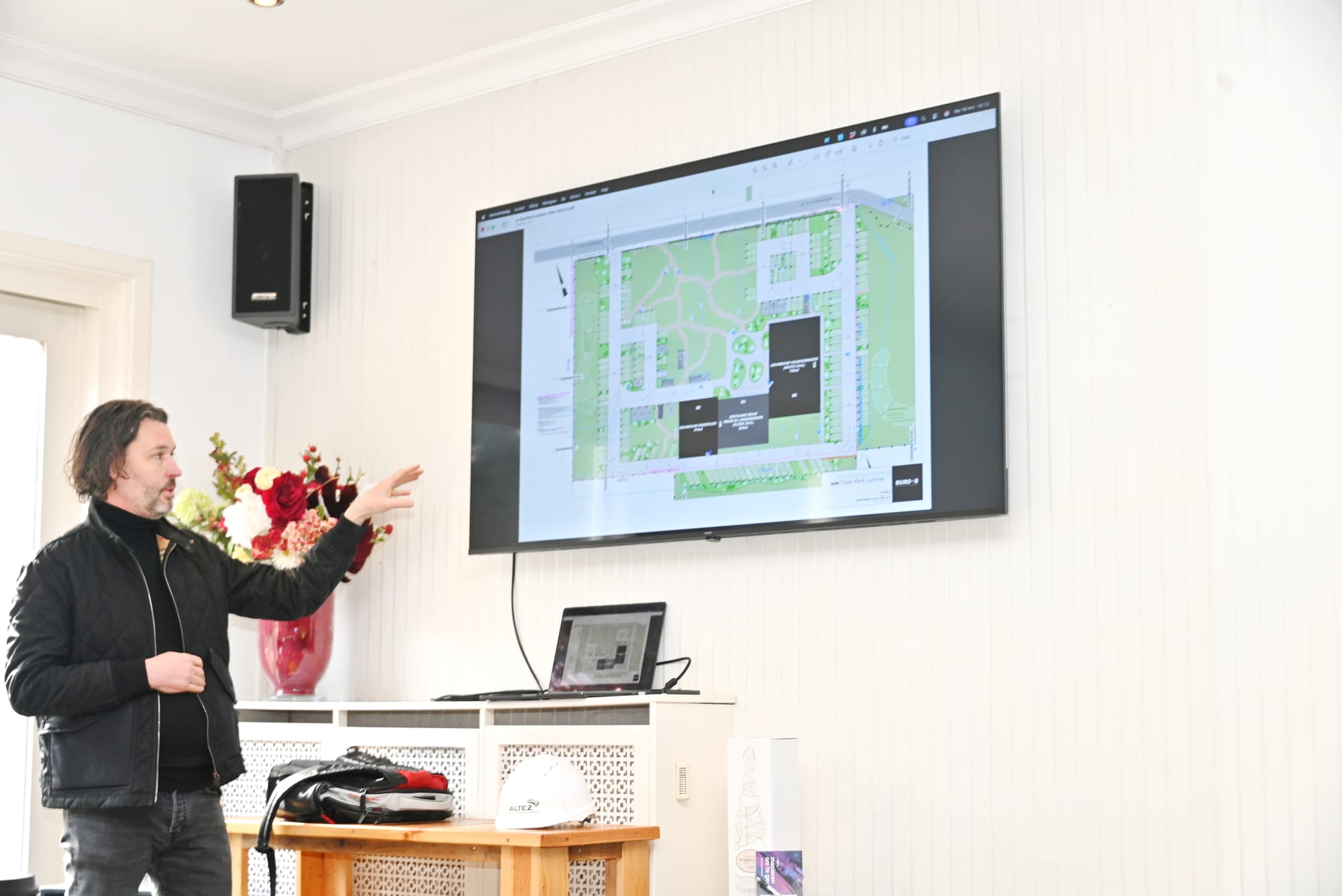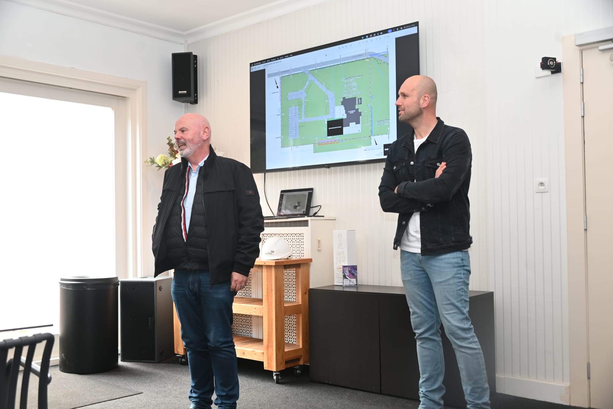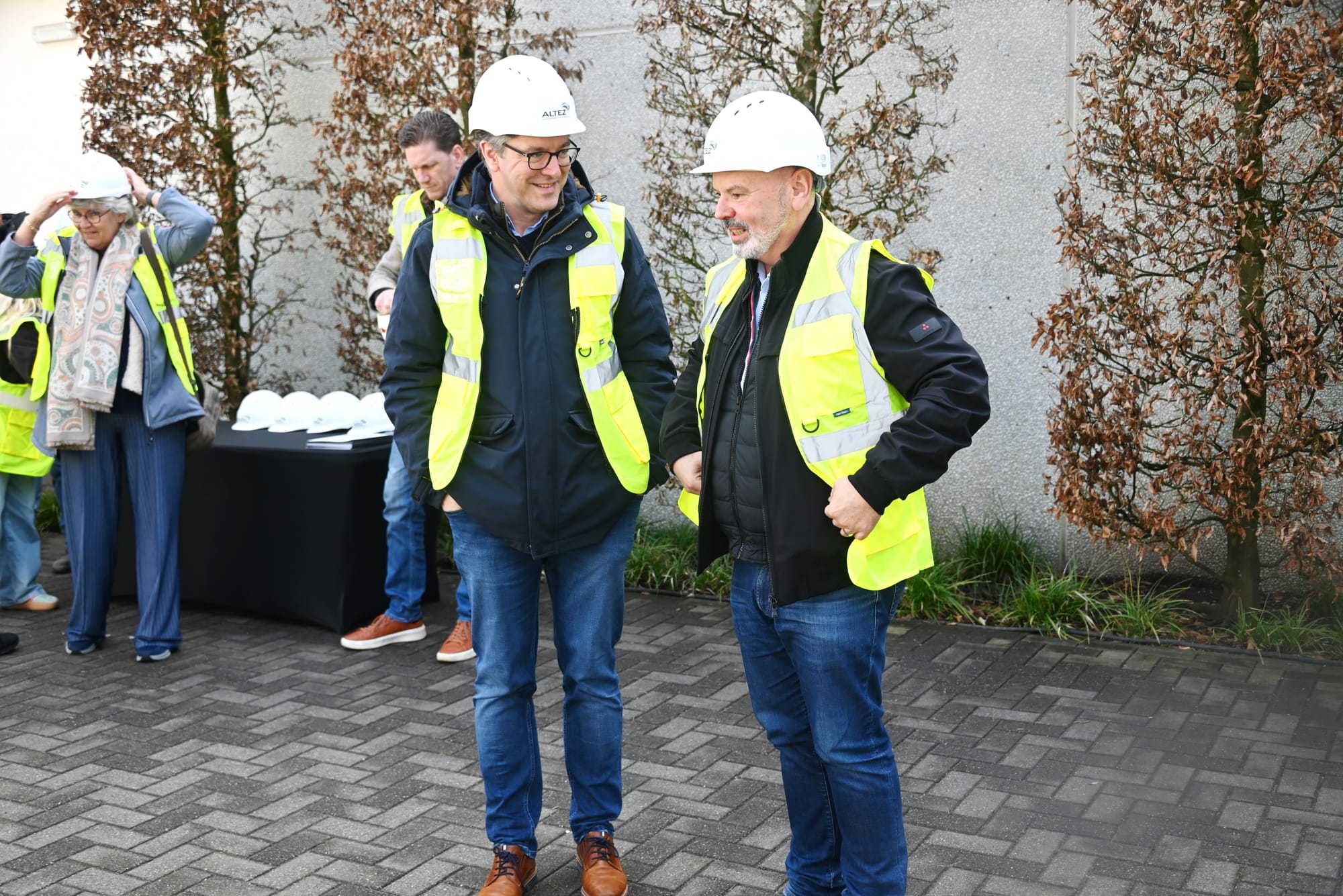 Bouwheer Tim Laurey en Stefan Coolen van Altez Construction Group gaven hierbij een korte toelichting over hun visie op het project, waarna de kolom effectief werd vastgezet.