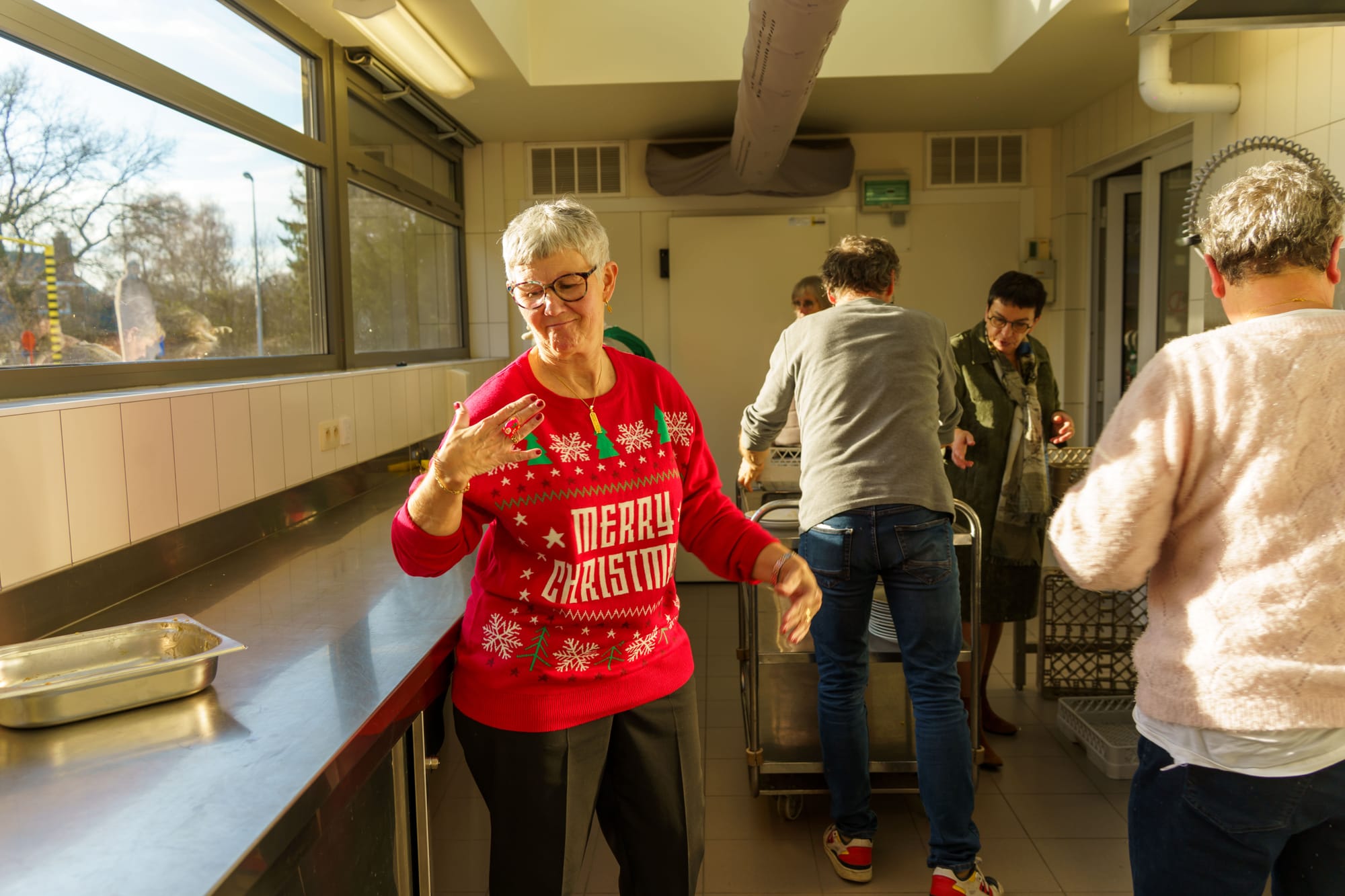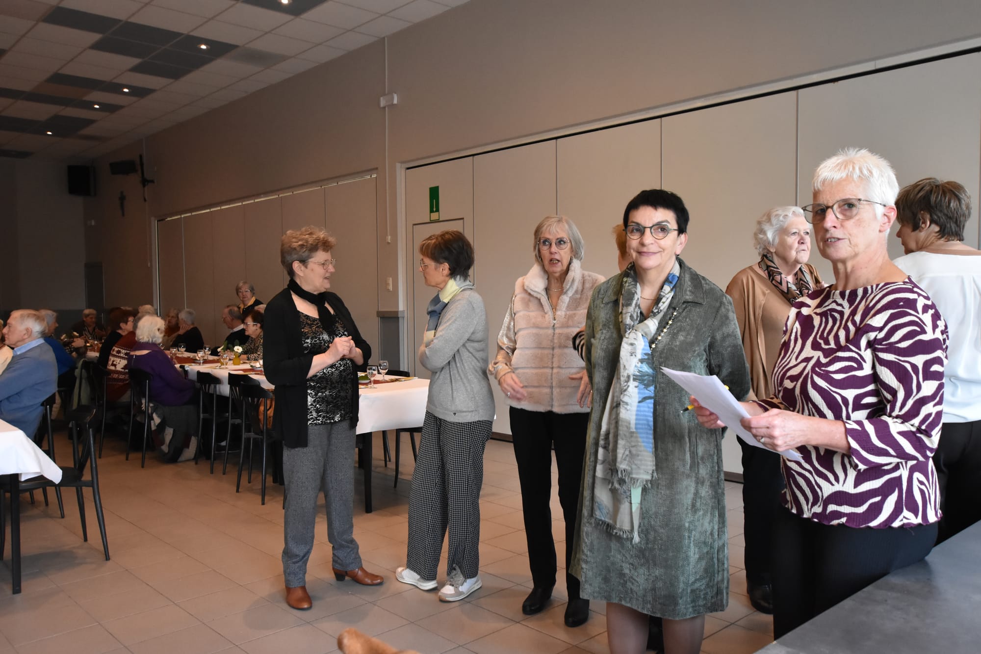 Rond 12.30 u werden de leden hartelijk verwelkomd door voorzitster Louisa, waarna ze genoten van een mooie kerstbezinning, opgesteld door Lieva, Ria en Guido. Het was een warm moment van bezinning en samenhorigheid.