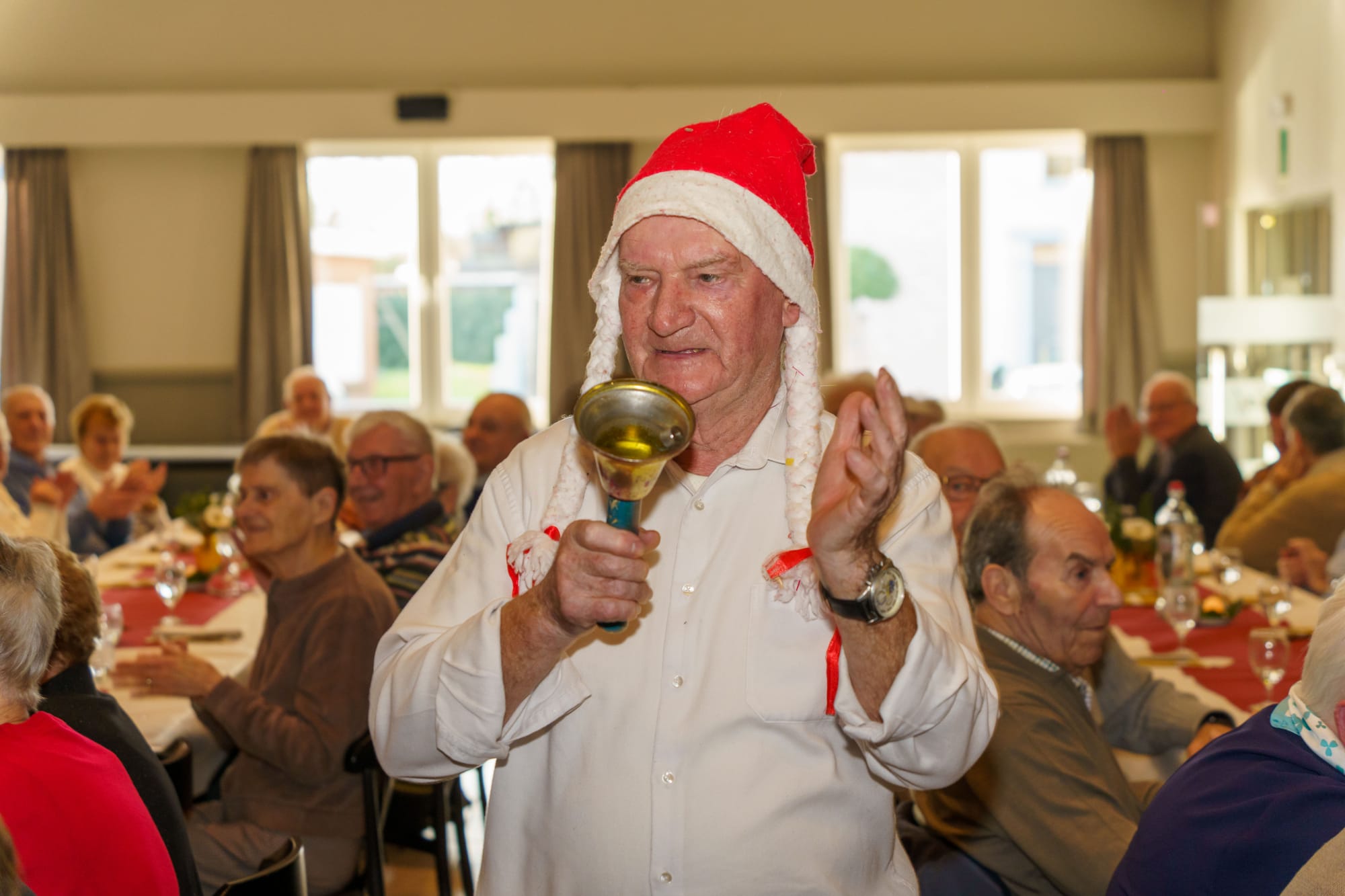Meer dan 85 leden van Samana Lommel centrum vierden vandaag hun jaarlijks kerstfeest in een sfeervol Klosterhof. De kernleden hadden ‘s morgens al met veel zorg en enthousiasme de tafels feestelijk versierd.
