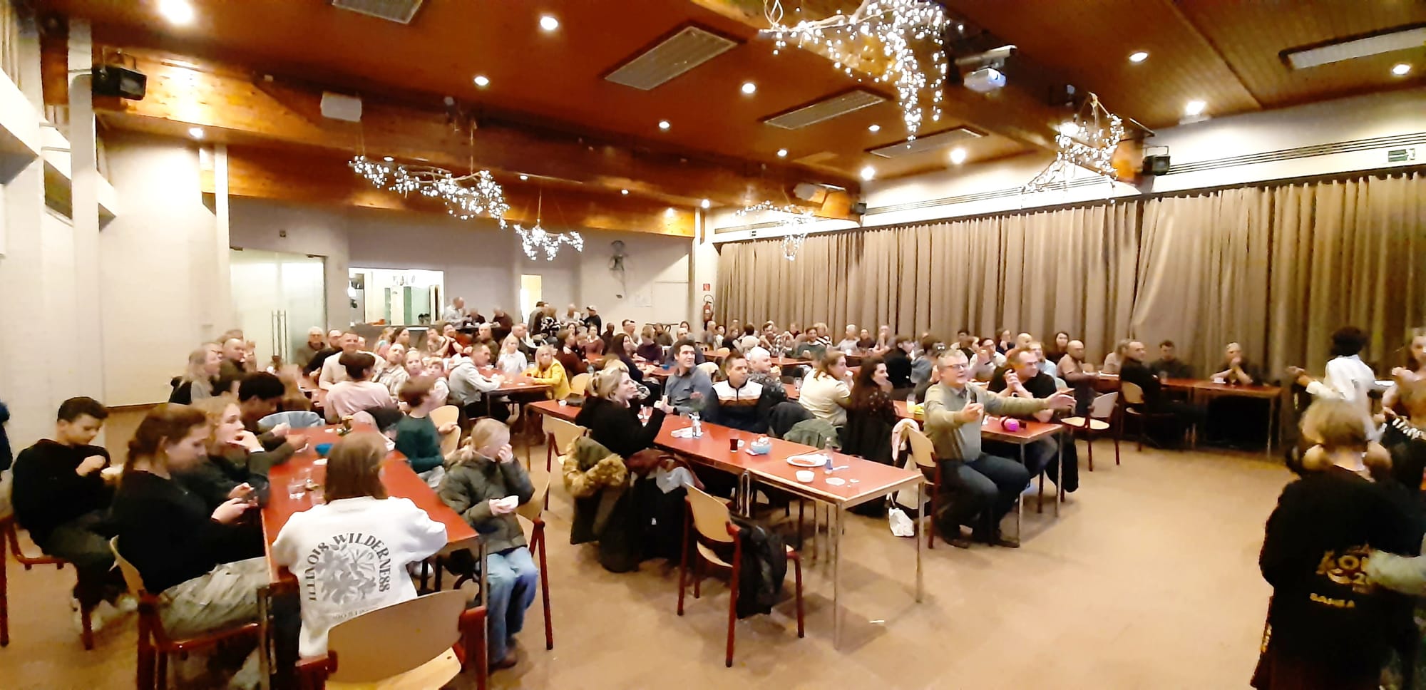 Om 18 uur startte dan de feestavond met een woordje van de voorzitter. Hierbij werden de secretaris, Fernand Geukens en zijn vrouw Maggy in de bloemetjes gezet voor hun jarenlange inzet voor de club.