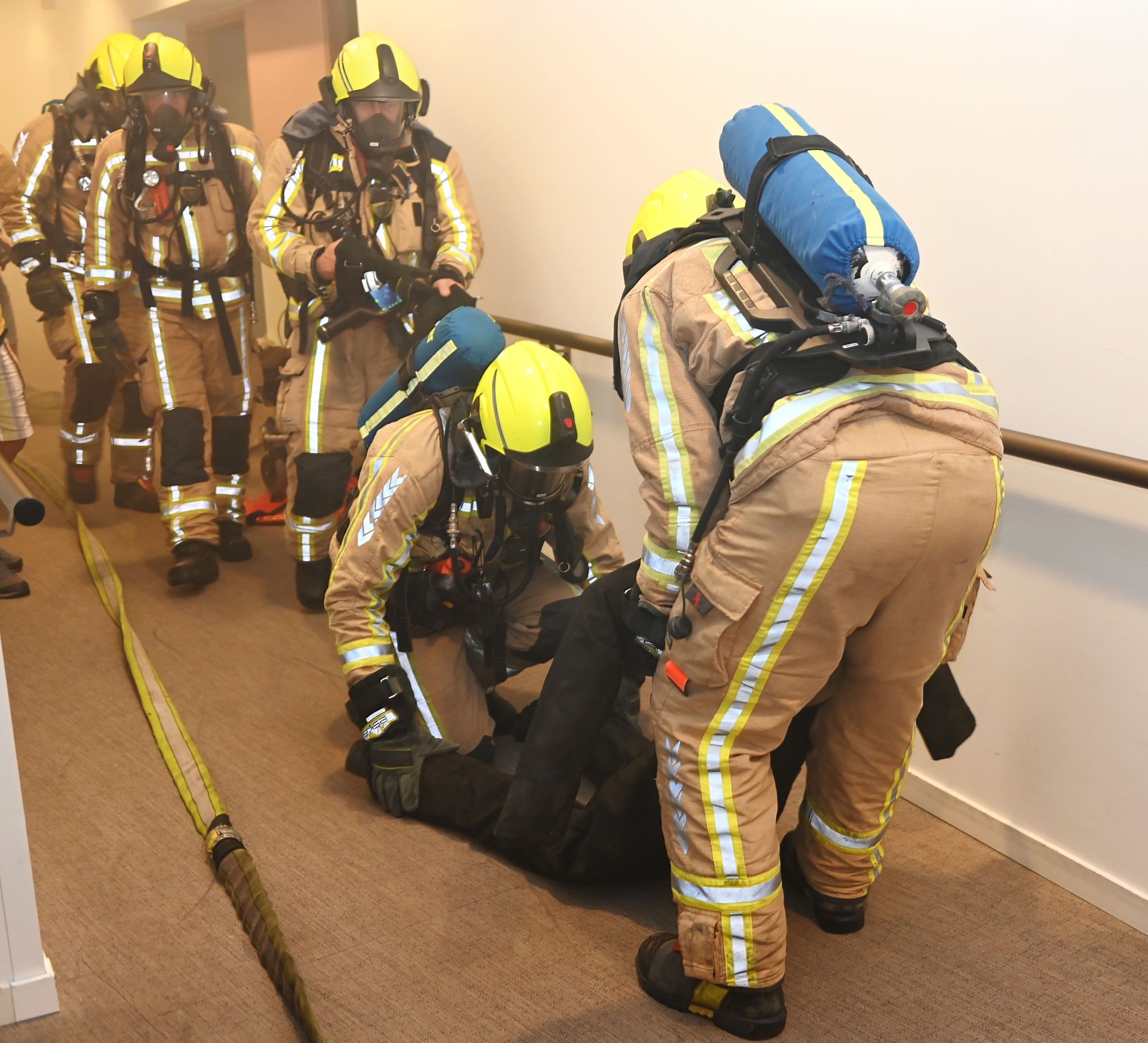 En alles is vlotjes verlopen, de vleugel waar zich de rookontwikkeling voordeed werd vrij snel geëvacueerd, de brandweer arriveerde en kon het 'slachtoffer' redden uit de kamer waar de rookontwikkeling zich voordeed.