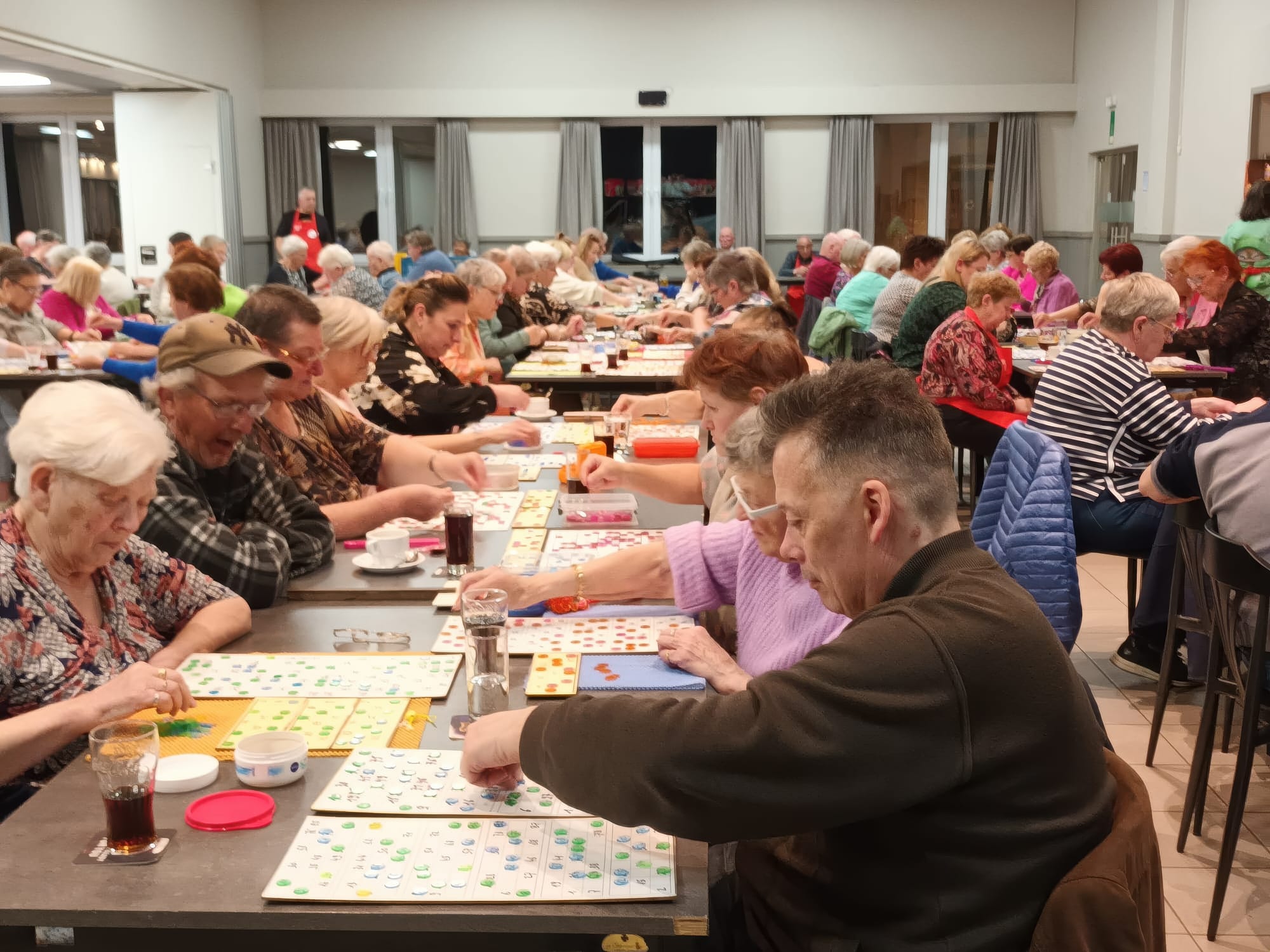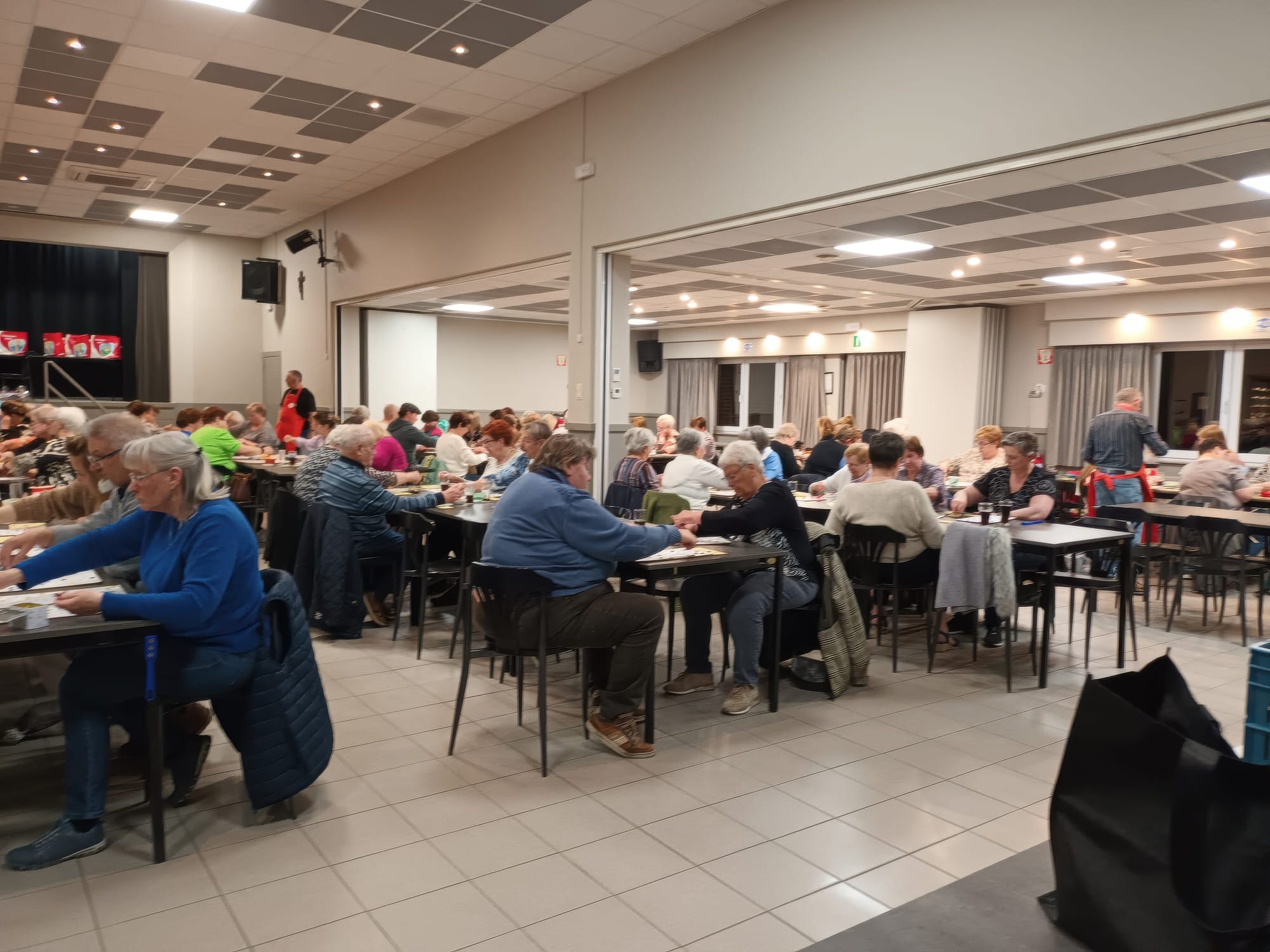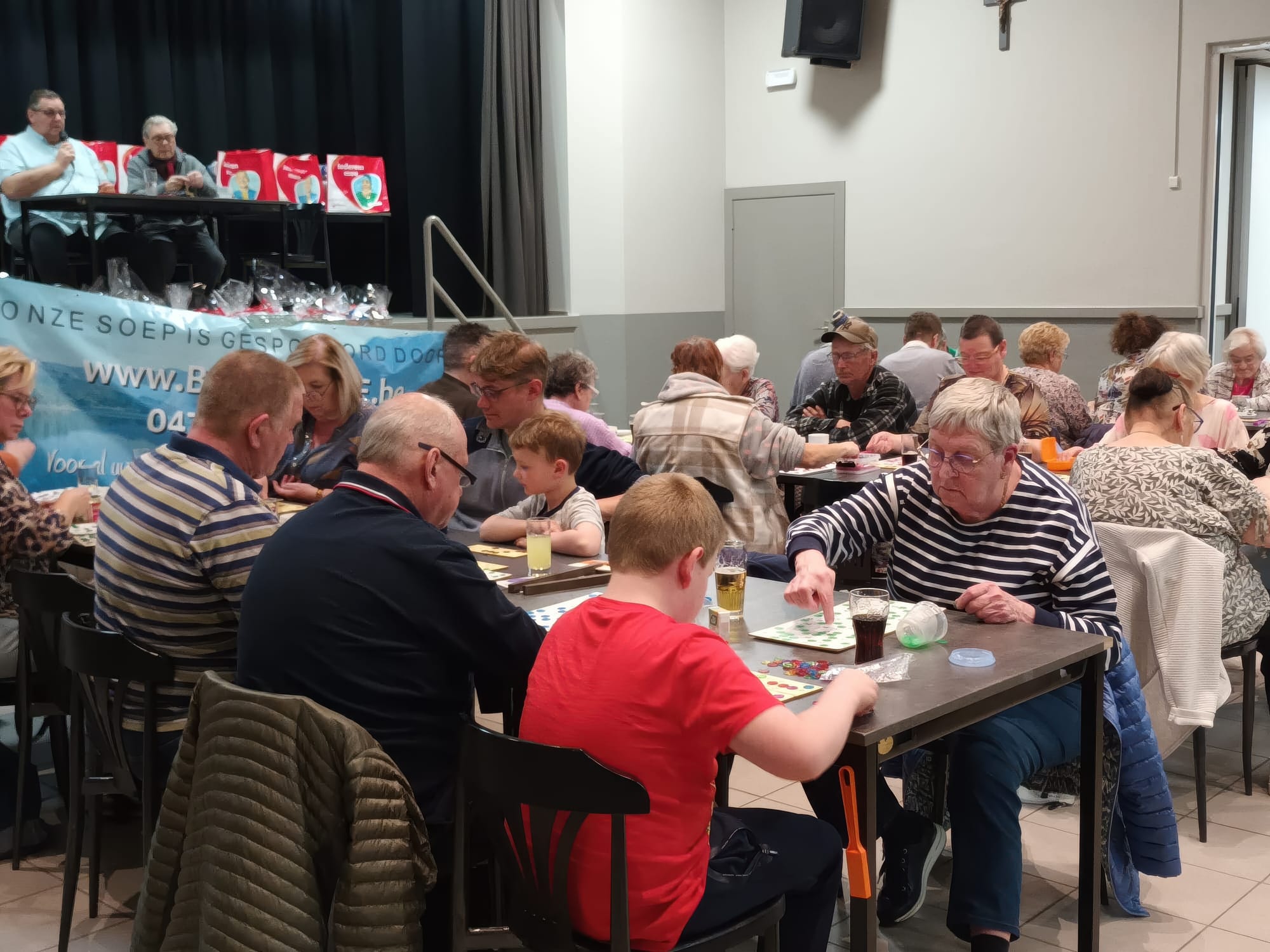 De deelnemers genoten van een gezellige avond met een kom soep, een broodje en uiteraard het kienen zelf.