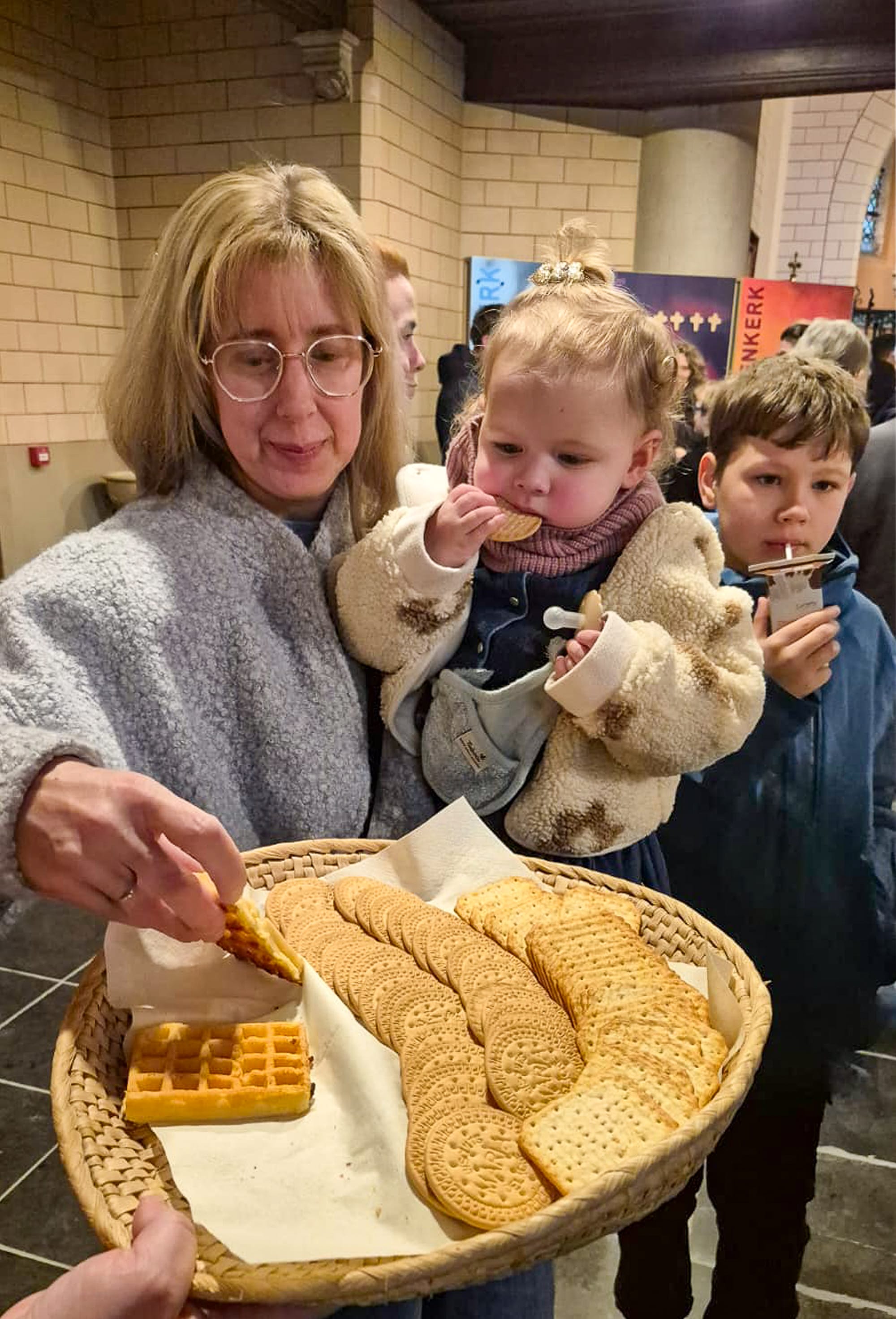 Een mooie, verbindende viering vol warmte, muziek en licht voor het hele gezin. Na de viering kregen ze allemaal nog een koekje of wafel en een frisdrankje.
