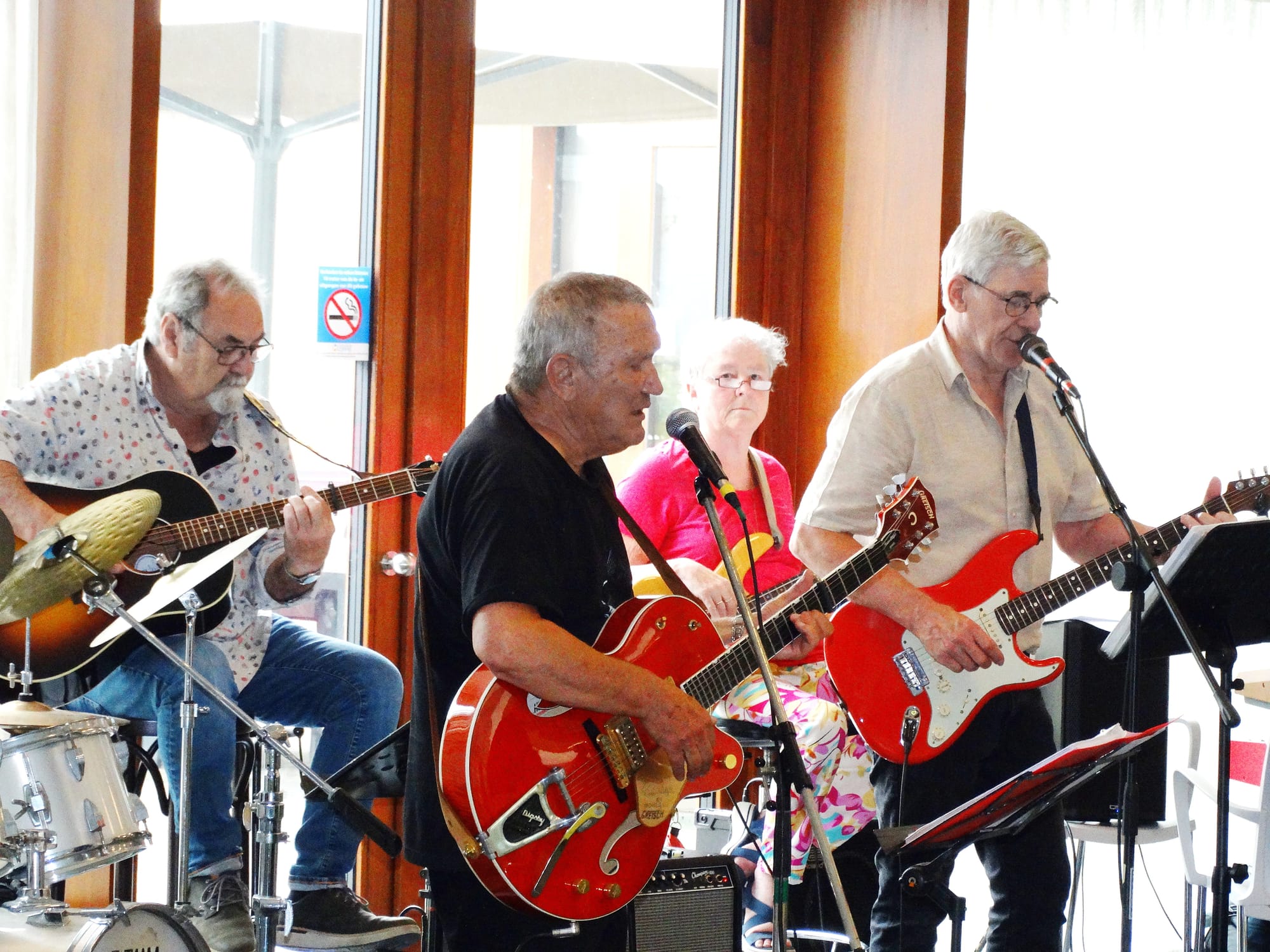 Ook woonzorgcentrum Hoevezavel participeerde dit jaar aan het project 'Gluren bij de Buren', en er trad een wel erg past groep op, nl. 'Zes Tinten Grijs'...