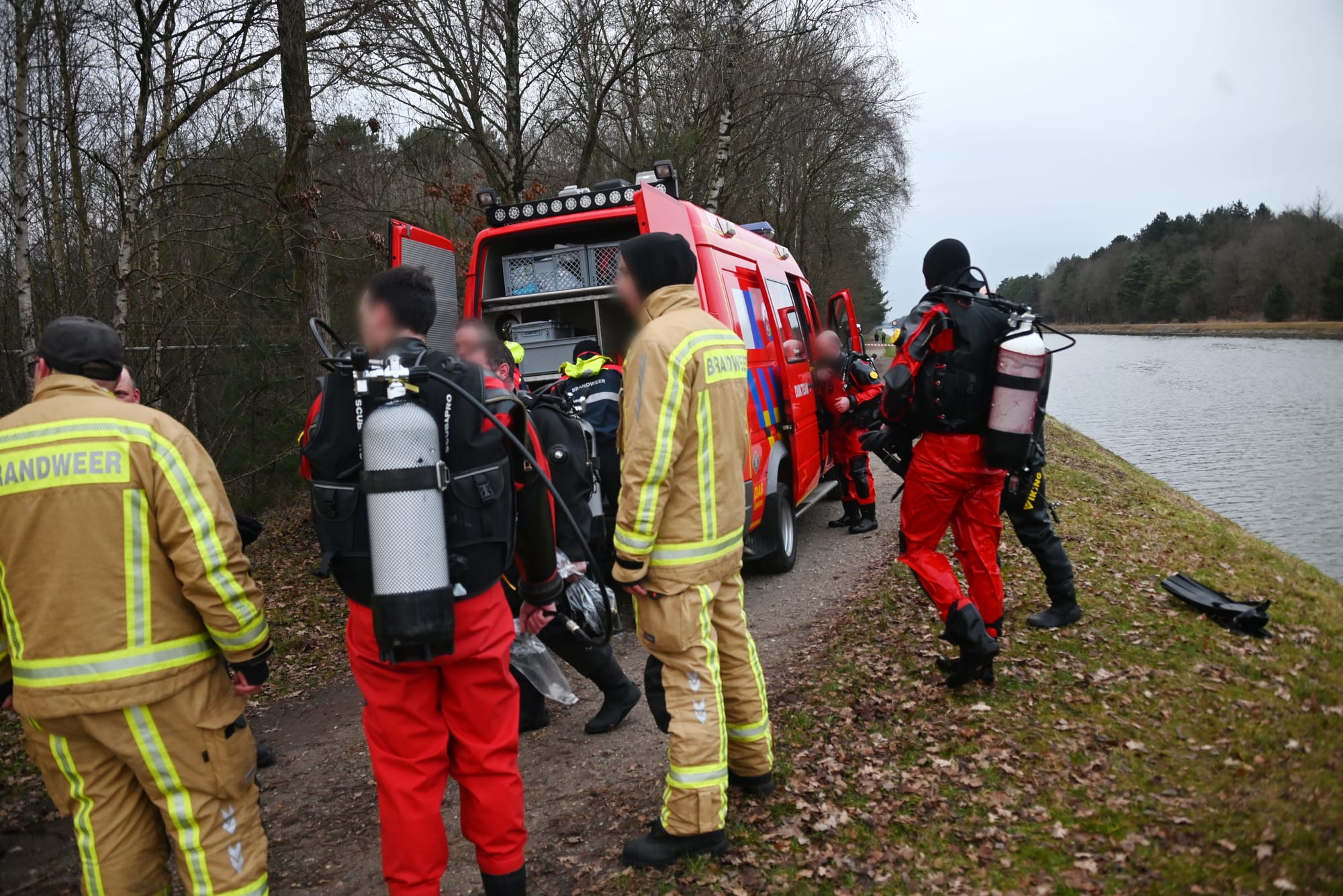 Blijkbaar had er iemand alarm geslagen omdat er een step in het kanaal, op de berm, was aangetroffen. De hulpdiensten waren snel in grote getale aanwezig en zetten meteen ook duikers in. Maar... er werd niets gevonden: gelukkig maar! Eén zaak is wel zeker: de duikers zullen het alles behalve warm gehad hebben met deze temperaturen...