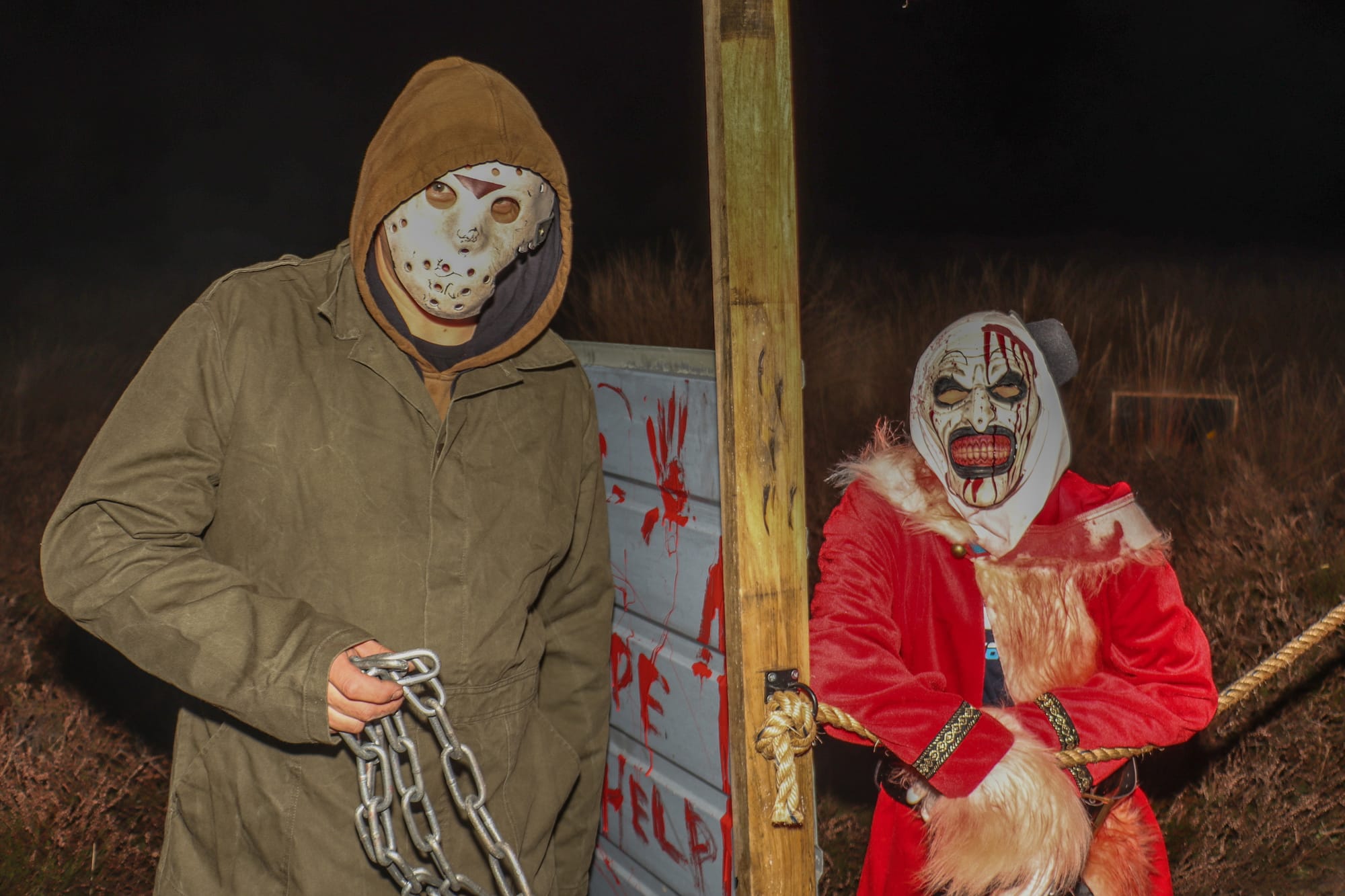 De Halloweenvrienden van de Heuvelse Heide doen deze jaarlijkse spook- en griezeltocht nu al voor de tiende keer waarbij ook meerdere carnavalsverenigingen de handen in elkaar slaan om de tocht tot een succes te maken. In het bos waren er een 120-tal figuranten die de mensen de stuipen op het lijf jaagden, ze waren verkleed in weerwolven, heksen, psychopaten, piraten, griezels uit films zoals Nightmare on Elm Street, en nog vele andere, dit alles op een parcours van ongeveer een 4-tal kilometer. Proficiat alweer aan de organisatoren, het was weer geweldig, zelfs onze reporter ter plaatse heeft gebibberd en gegild!