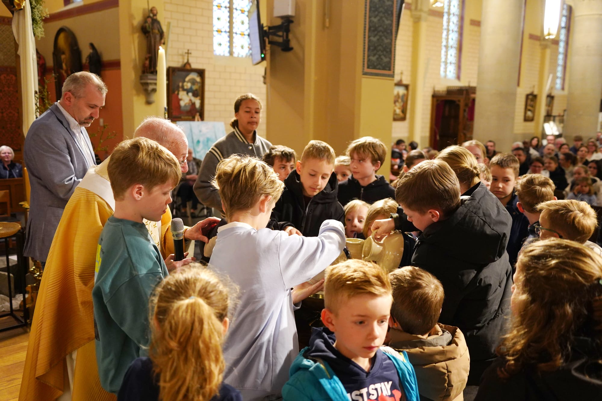 De kinderen werden op een speelse en actieve manier betrokken Er werd met kruiken water in het doopvond gedaan door de kinderen. Met kleine muziekinstrumentjes vormden ze een heus orkestje. Hun enthousiasme werkte aanstekelijk en zorgde voor een glimlach bij de aanwezigen.