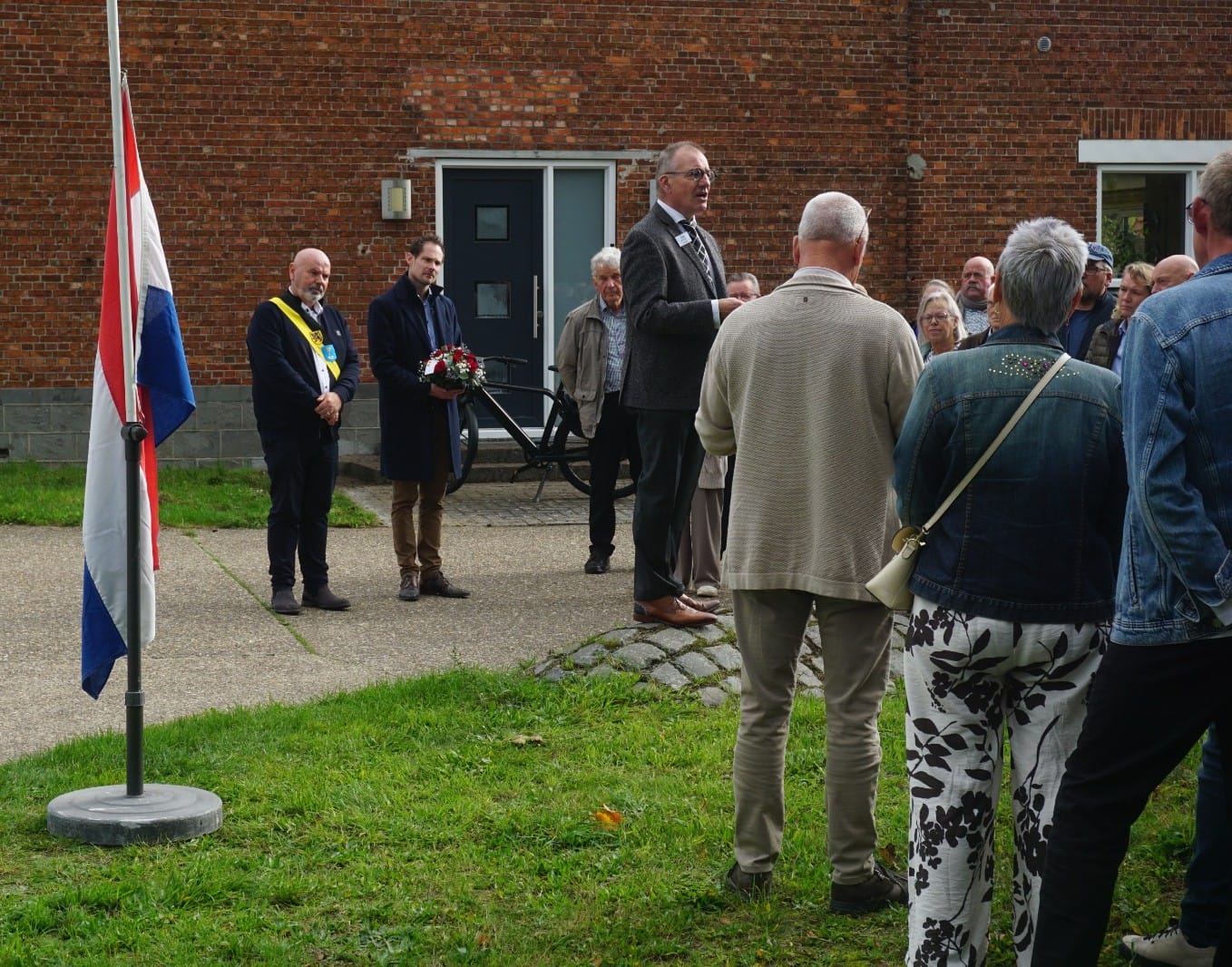 Vervolgens brachten de genodigden een bezoek aan het nabijgelegen monument ter nagedachtenis aan J.O.E. Vandeleur waar de afgevaardigde van de stad Lommel, schepen Peter Vanderkrieken, in aanwezigheid van de wethouder van Valkenswaard, dhr. Bram Bots een toespraak hield.