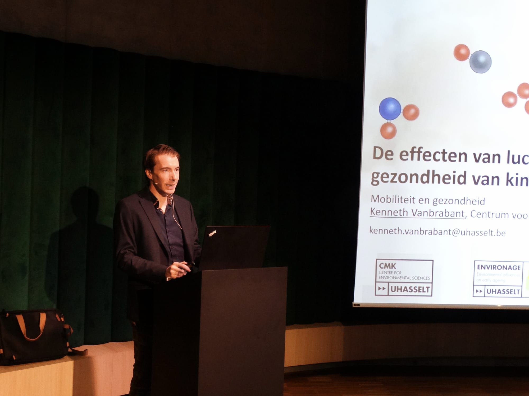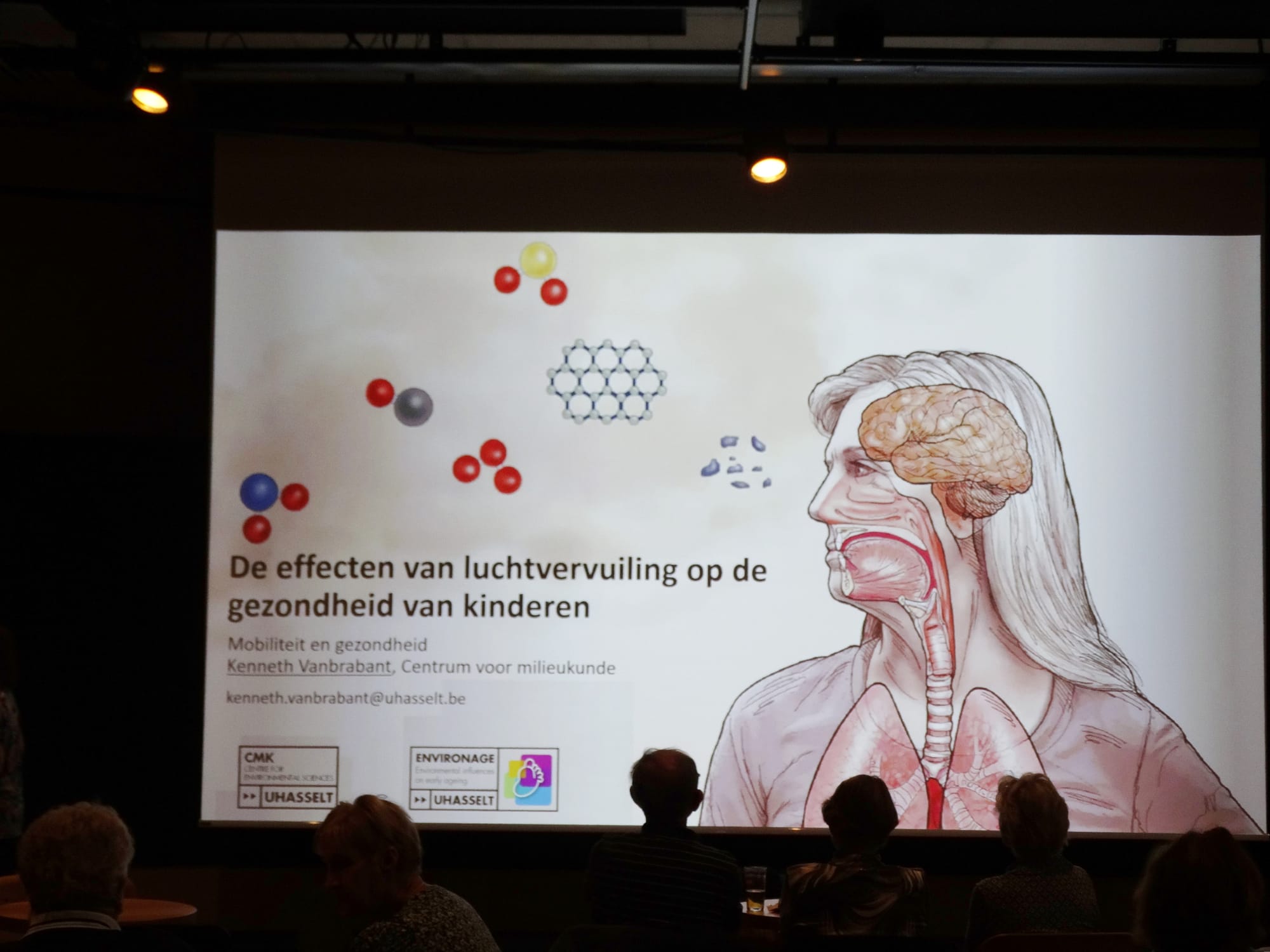 Kenneth van Brabant: luchtvervuiling is eigenlijk overal om ons heen. Dat zijn heel fijne deeltjes die we niet zien, maar die zelfs hier ter plaatse aanwezig zijn. Dus in de tijd dat jullie het uurtje naar het praatje van mij gaan luisteren, dan gaan jullie duizenden tot miljoenen van deze ultrafijne stofdeeltjes inademen. En die gaan zich eigenlijk tot diep in de longen vestigen... en vandaar zich over het hele lichaam verspreiden.