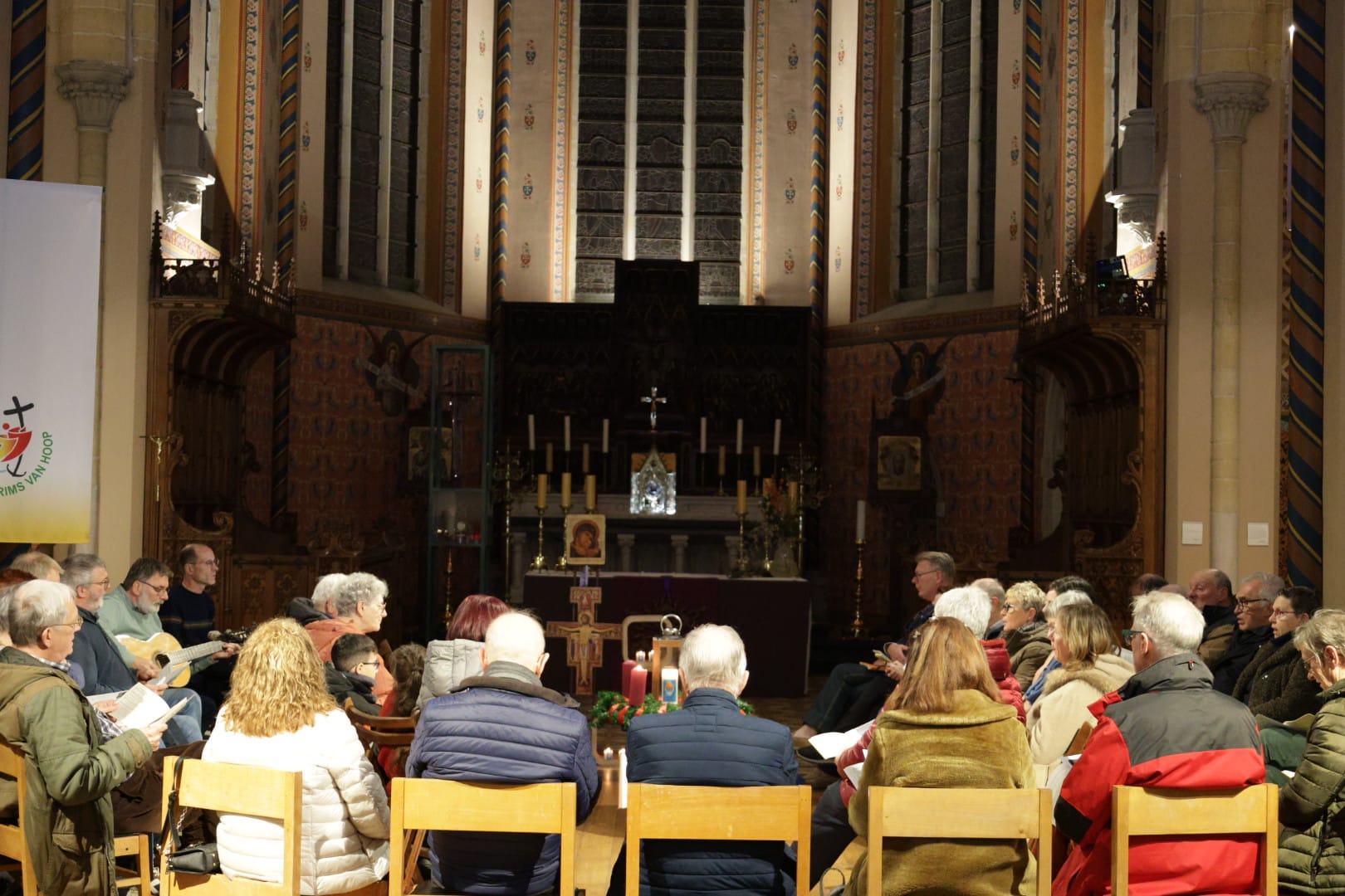 Naar jaarlijkse gewoonte werd er vanavond gezongen in de kerk, liederen van de oecumenische geloofsgemeenschap van Taizé. Dit zijn eenvoudige liederen die hun kracht ontlenen aan de herhaling. Door de muziek van Taizé ervaar je iets dat boven jezelf uitgaat. Je wordt erin meegenomen en het brengt je tot rust.