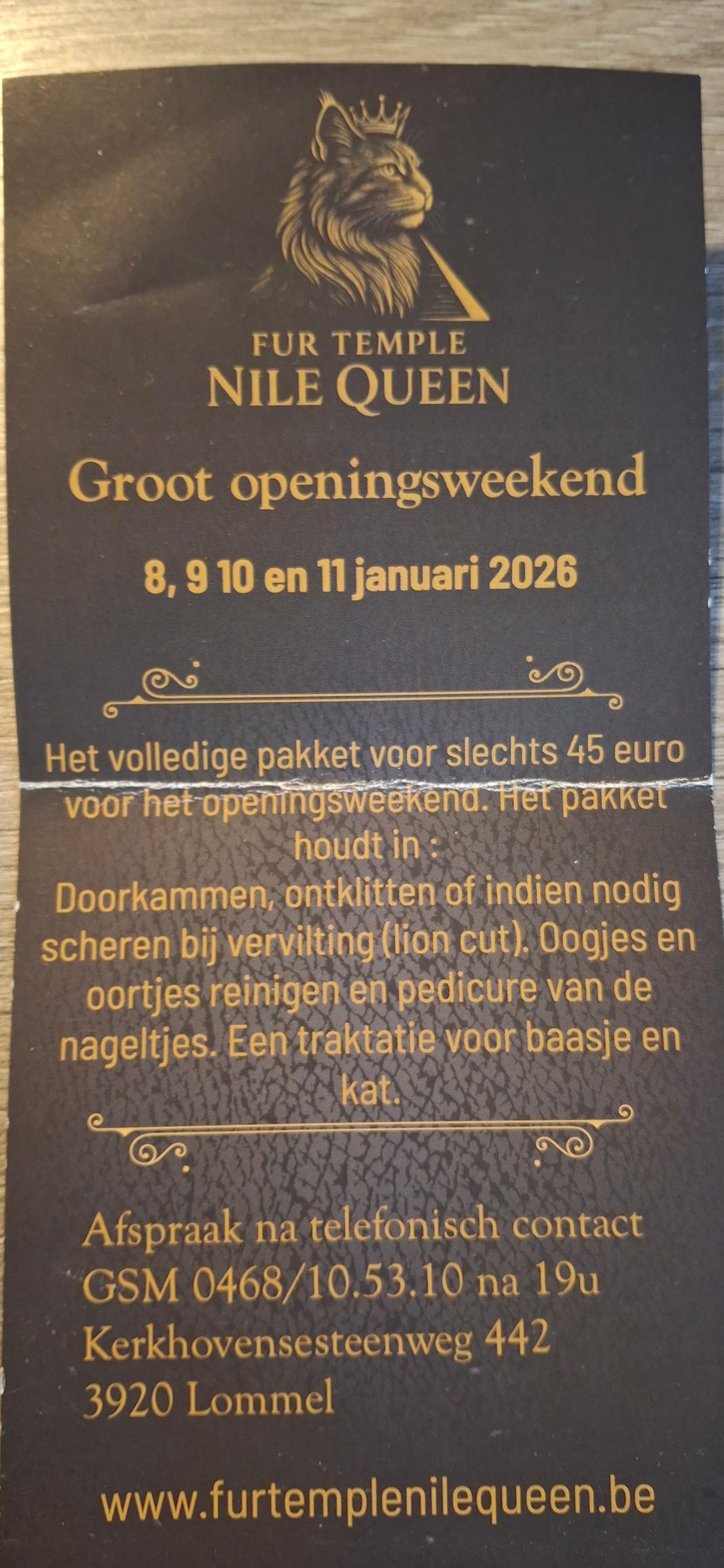 Dit weekend was het openingsweekend bij 'Fur Temple NILE QUEEN', een katten trimsalon in Kerkhoven. Onze fotografen Philippe en Shawna gingen er een kijkje nemen met hun eigen kat, en ze kwamen er erg tevreden terug buiten...: de nageltjes geknipt en oortjes uitgekuist, mooie gekamt en bij het vertrek kregen de baasjes en de kat ook nog een leuke een verrassing.