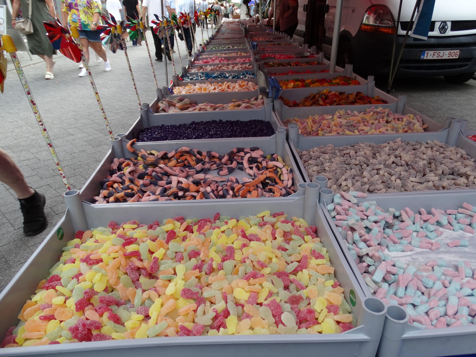 De jaarmarkt: na een aarzelende start vorig jaar met niet al te veel volk en ook weinig kramen, was het gisteren wél een enorm succes. Zowel het aantal kramen als het volk was verdubbeld, zoniet verdriedubbeld!