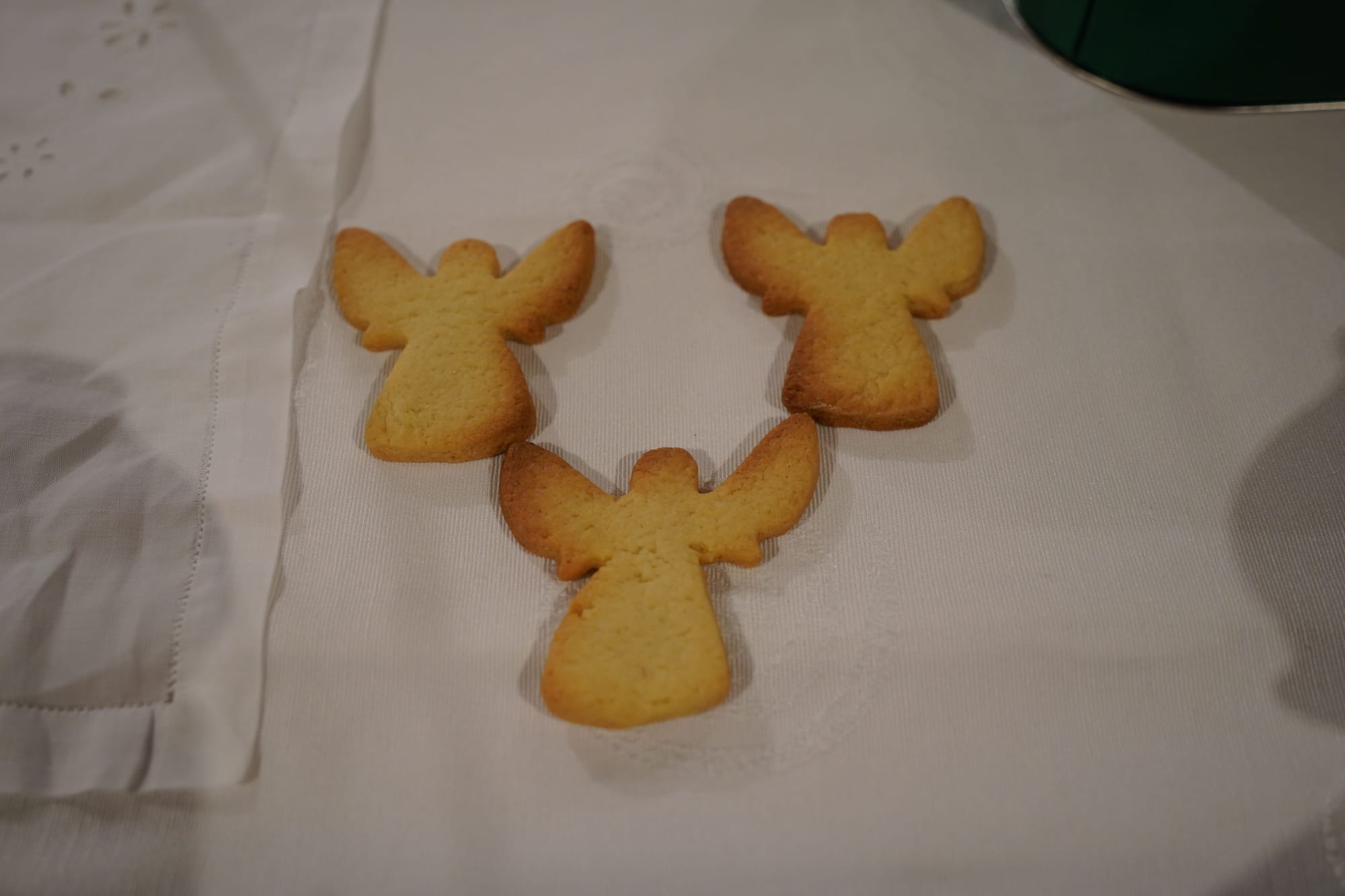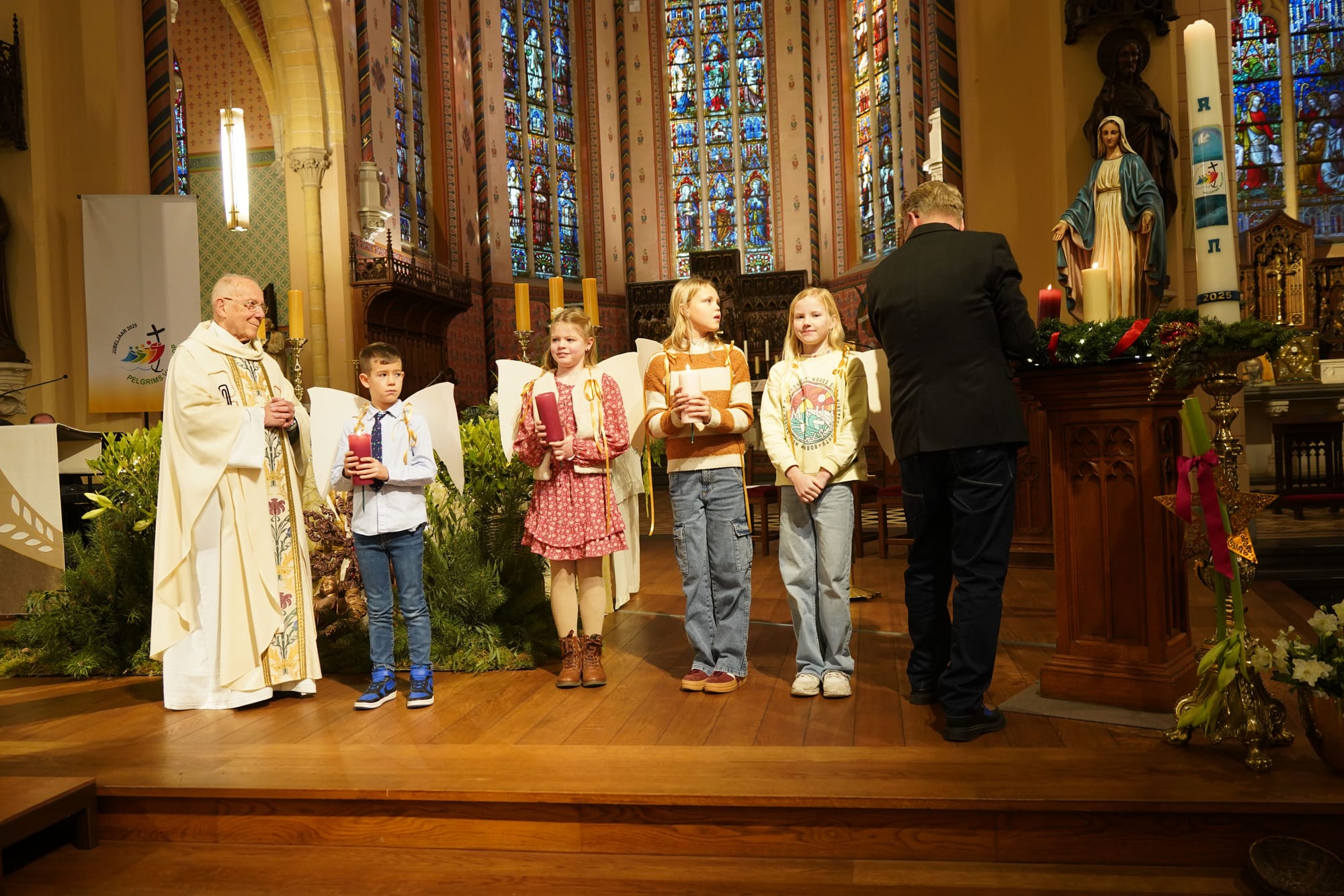 Na de viering werden heerlijke koekjes in de vorm van engeltjes uitgedeeld - een kleine, maar hartverwarmende attentie. De kinderen mochten op het einde zelfs meespelen met muziekinstrumentjes en samen met het koor zingen, wat zorgde voor een vrolijk en ontroerend slotmoment.