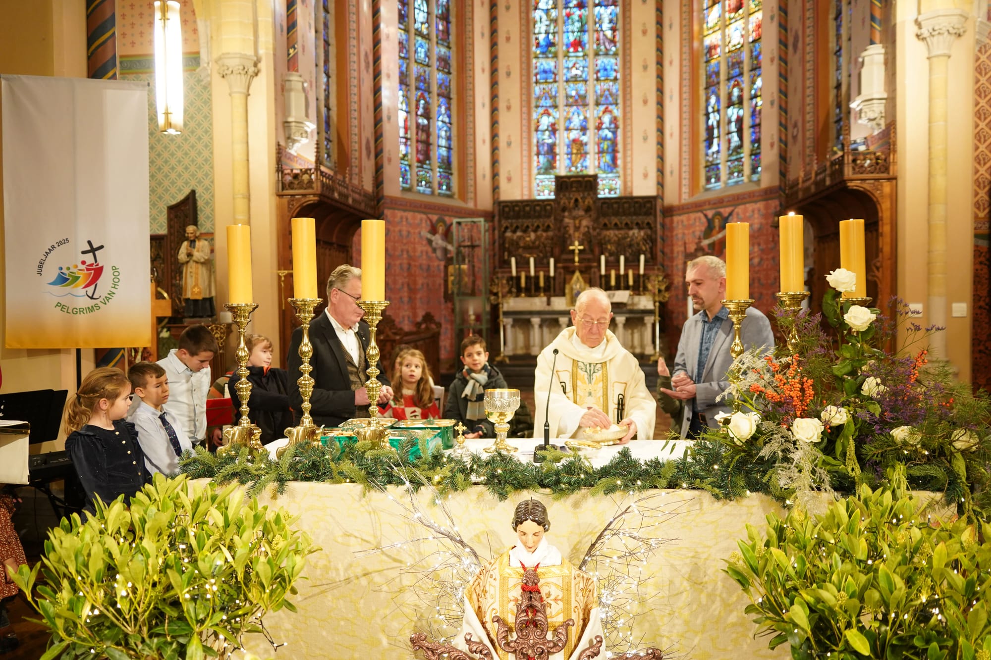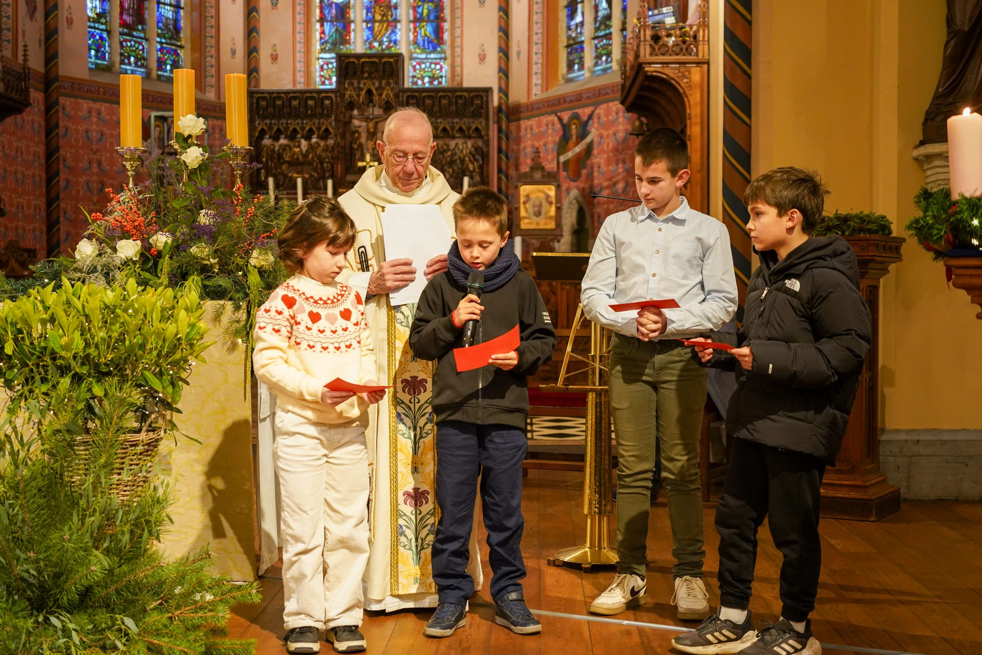 Vandaag was de kerk van Lommel-Centrum tot de laatste plaats gevuld voor een bijzonder warme gezinsviering. Het jongerenkoor van Lutlommel zorgde voor een sfeervolle muzikale omlijsting met een mix van bekende en minder bekende kerstliederen die iedereen meteen in de kerstsfeer brachten.