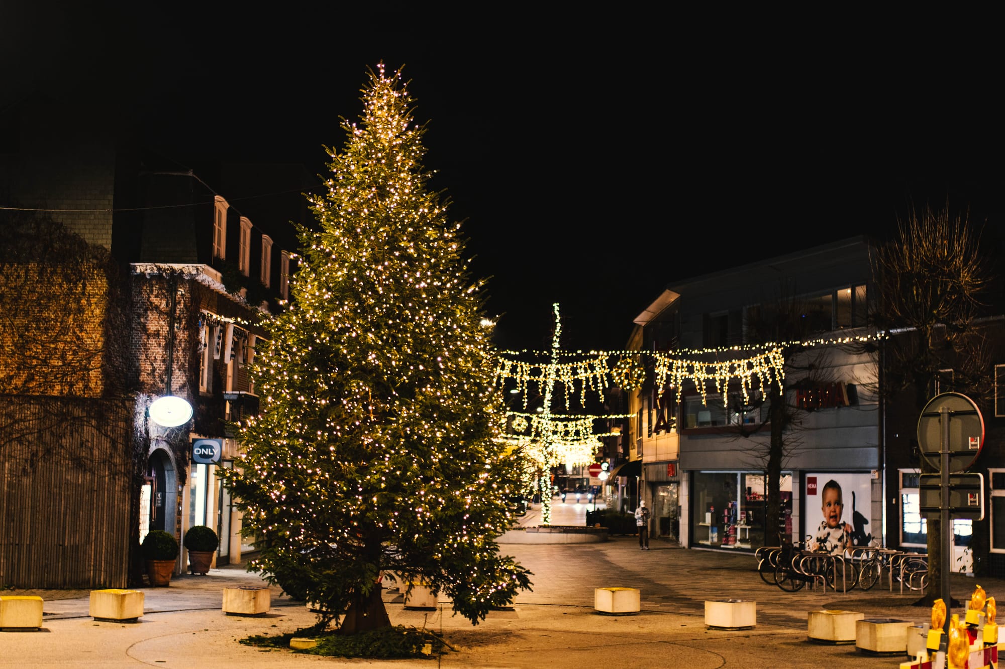 Soms hangen ze al half november, dit jaar is het iets later, maar... ze hangen er weer, de kerstlampjes in ons centrum! Het heeft toch 'iets' iedere keer opnieuw, de sfeer is onmiddellijk heel anders, zeker 's avonds! Enkel in de grote boom op de Veemarkt moesten