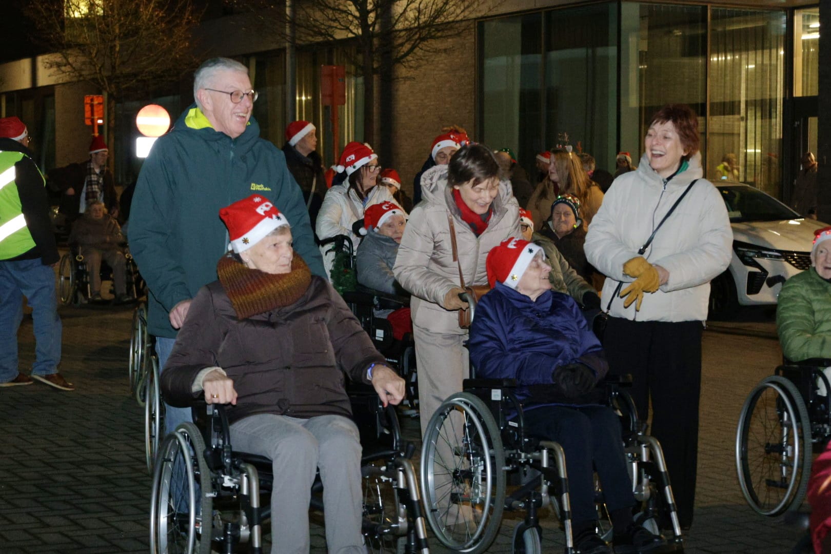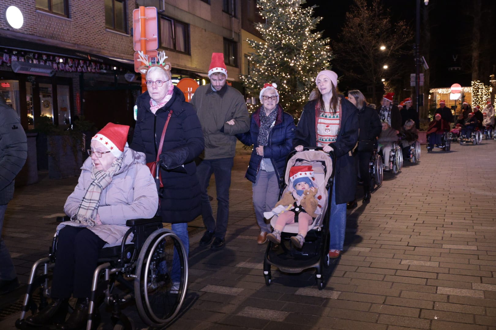 Bewoners én familieleden gingen vanavond 'op wandel' in ons mooi verlichte centrum. Ze vertrokken vanuit het woonzorgcentrum en gingen zo via het Dorp en de Kerkstraat tot aan de kerststal op het Kerkplein, en daarna weer terug naar 'huis'. Daar wachtte een heerlijke borrel én een optreden van het Kerstkoor.